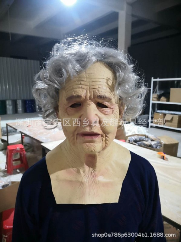 • ハロウィーンの模倣ヒューマンマスク老人の頭カバーアマゾンオールドマンマスクスポットウィッグオールドグランママスクスポット
