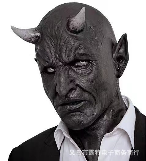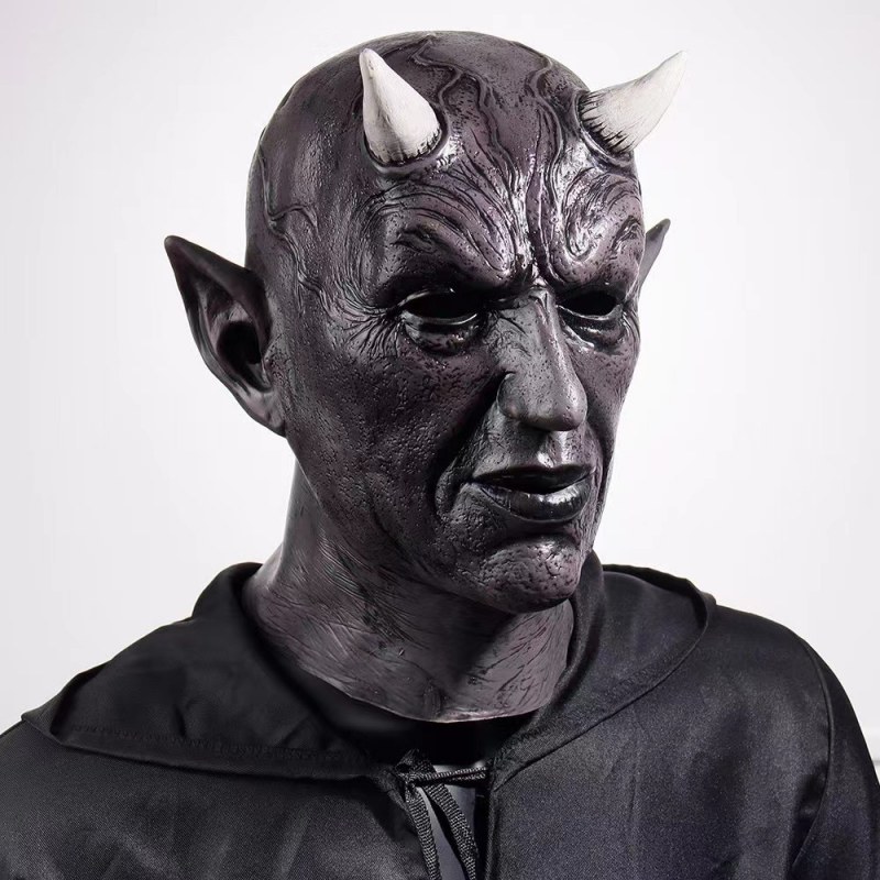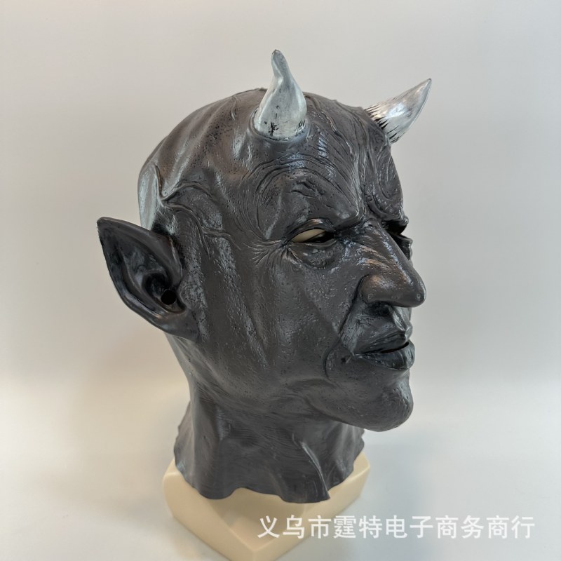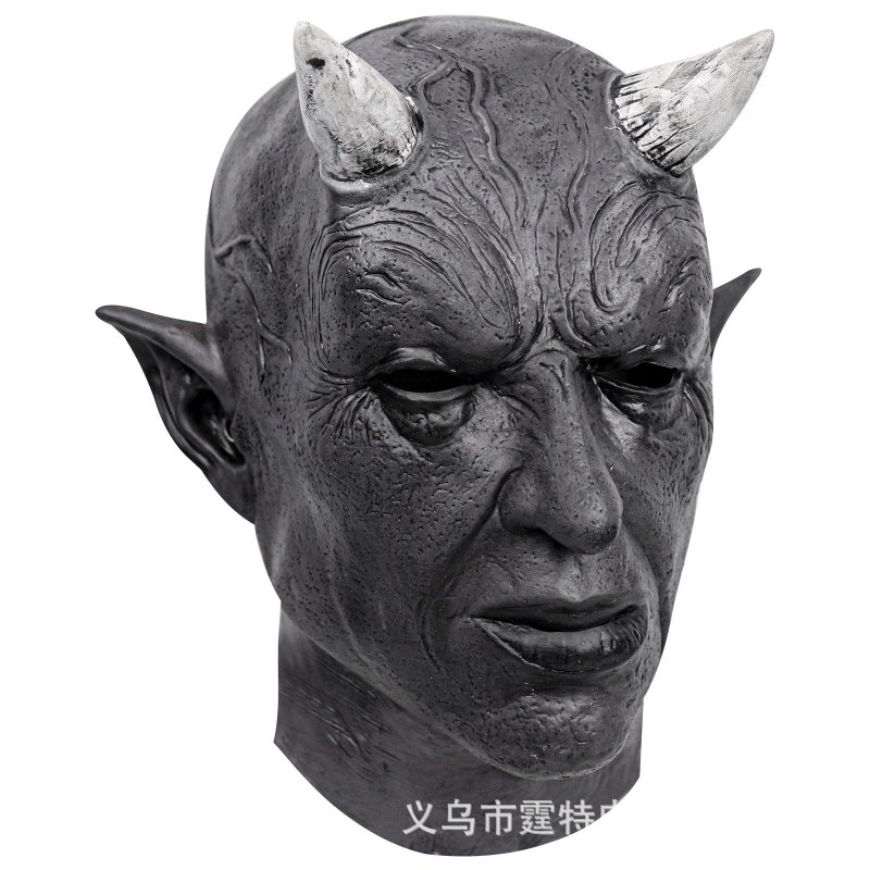 • 新しいブラックホーンデーモンマスクフルフレース乳製品ヘッドセットゴーストハウスデンセルー​​ム怖いドレッシングホーンフード