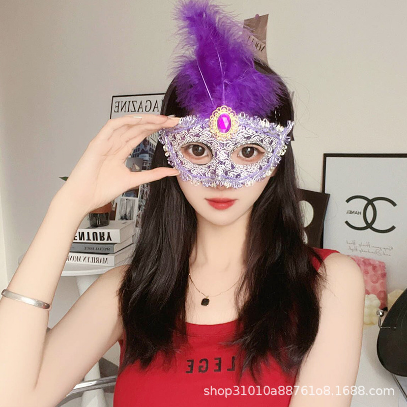 • 女性の古代スタイルの羽毛レースセクシーなマスクハロウィーン小道