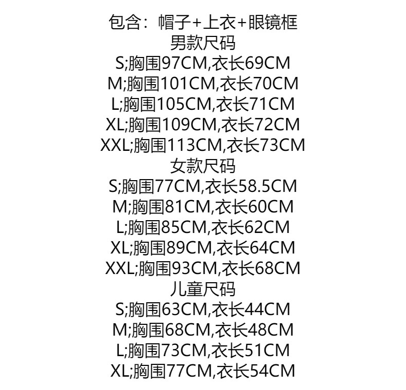 • 儿童(上衣+帽子+眼镜框)