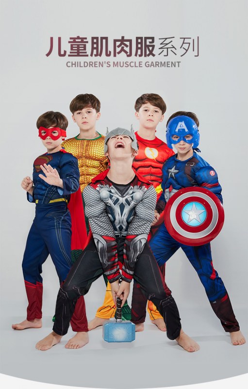 • 子供用服アメリカンキャプテンハルクアイアンスパイダーフラッシュマッスルパフォーマンスパフォーマンスセット