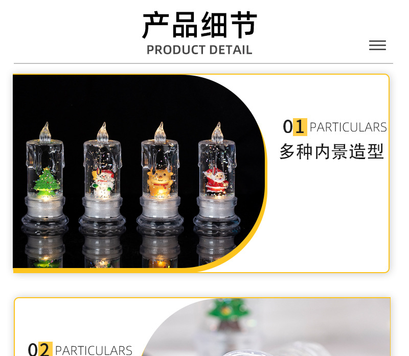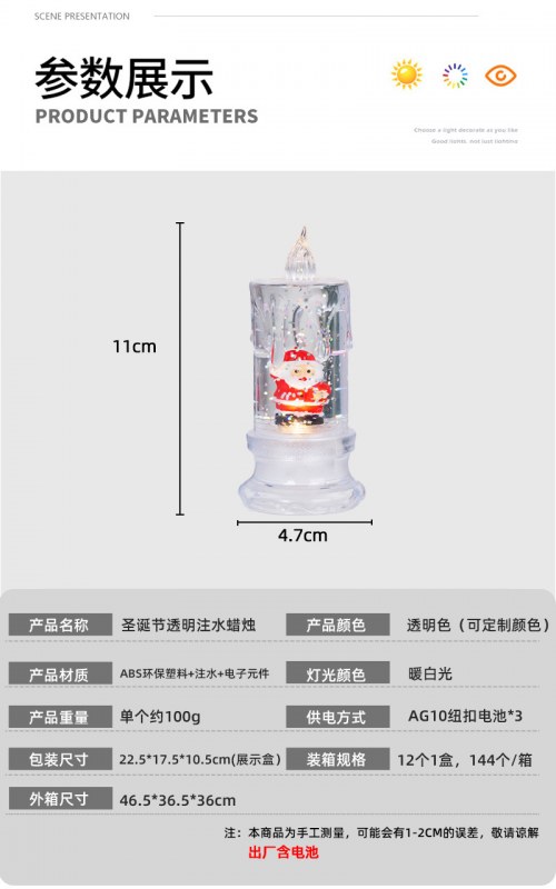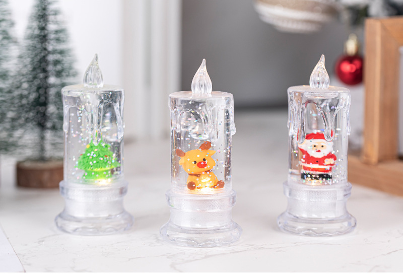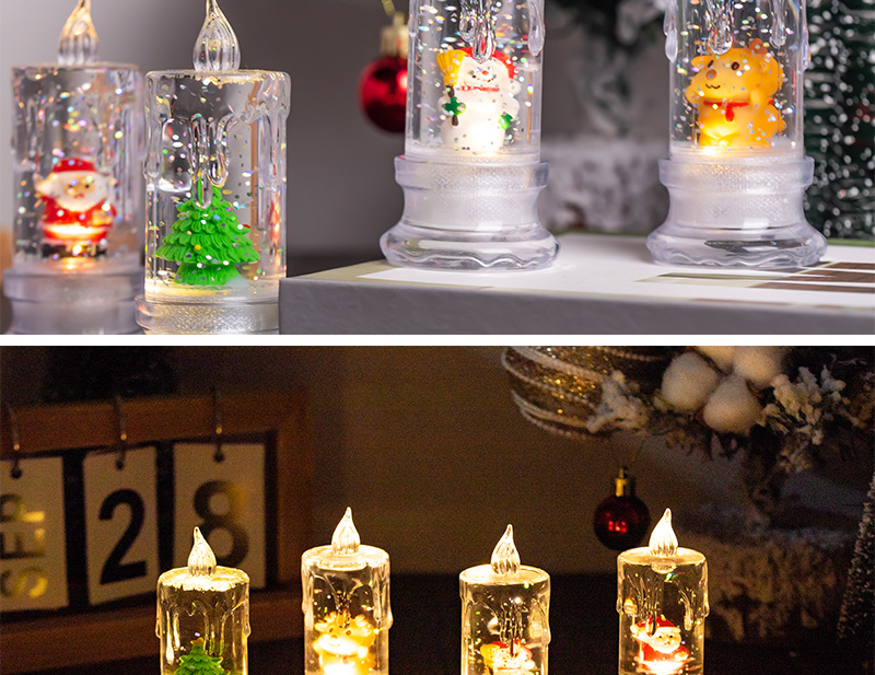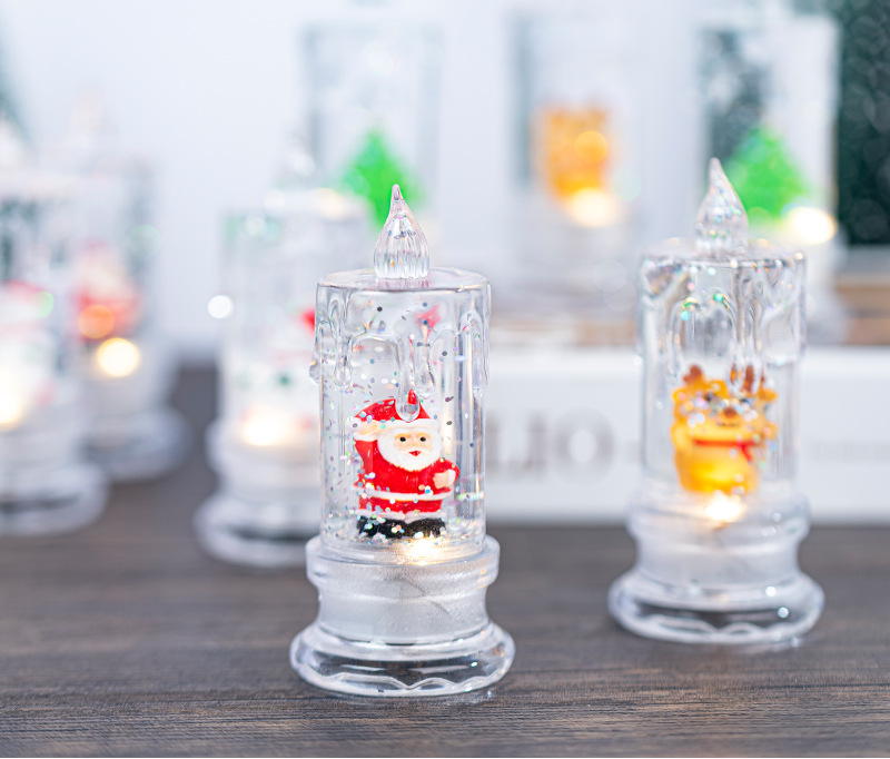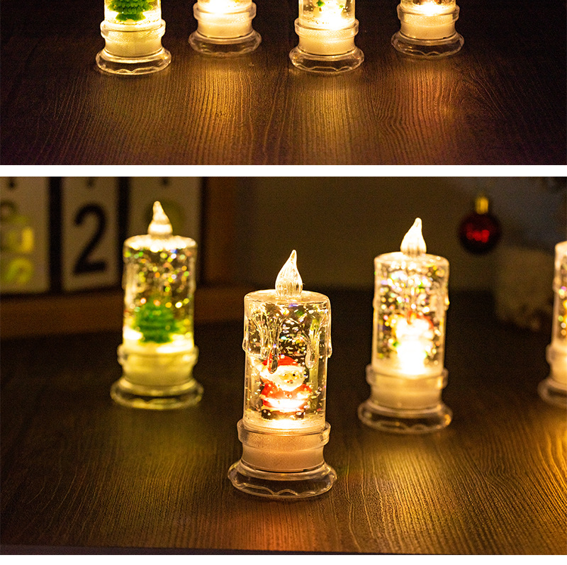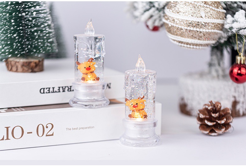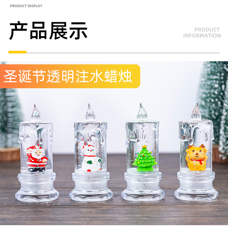 • クリスマスウォーターインジェクション、透明な流れる涙、シミュレーションLED電子キャンドルサンタサンタ雪だるま雪雪の夜の光