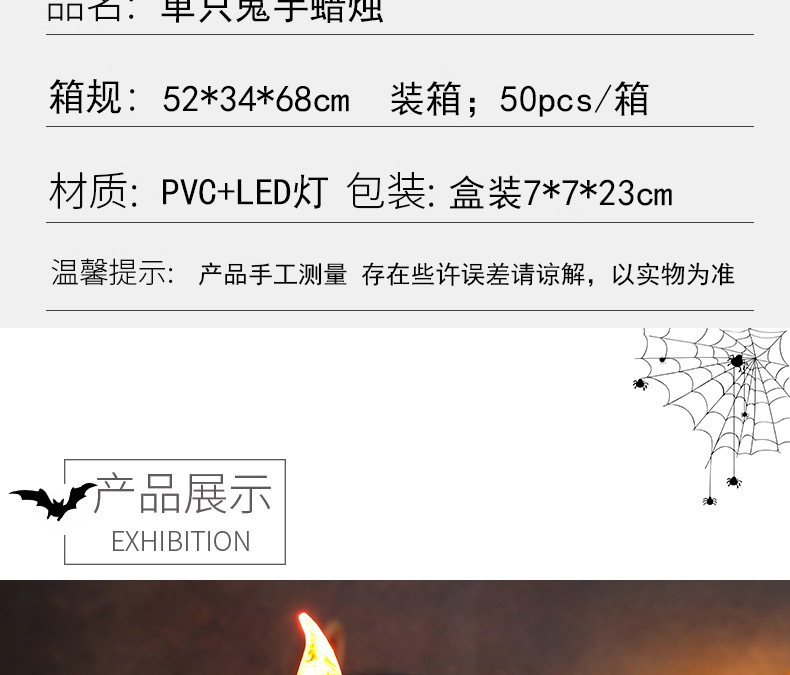 • ハロウィーンキャンドルライトキャンドルスティックライトハロウィーン装飾小道スカルハンドライトハロウィーンゴーストライトクリエイティブな装飾品