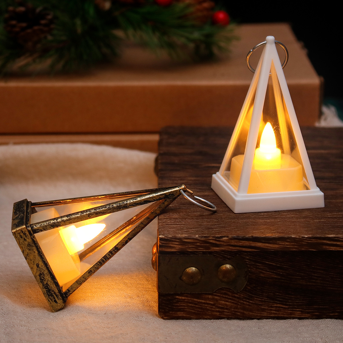 LEDプラスチック風ランタンスモールナイトライト:クロスカボリー電子キャンドル馬ライトランタンライトフェスティバルフェスティバルの三角形のランタンをセットアップ