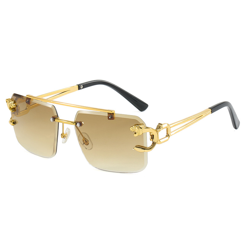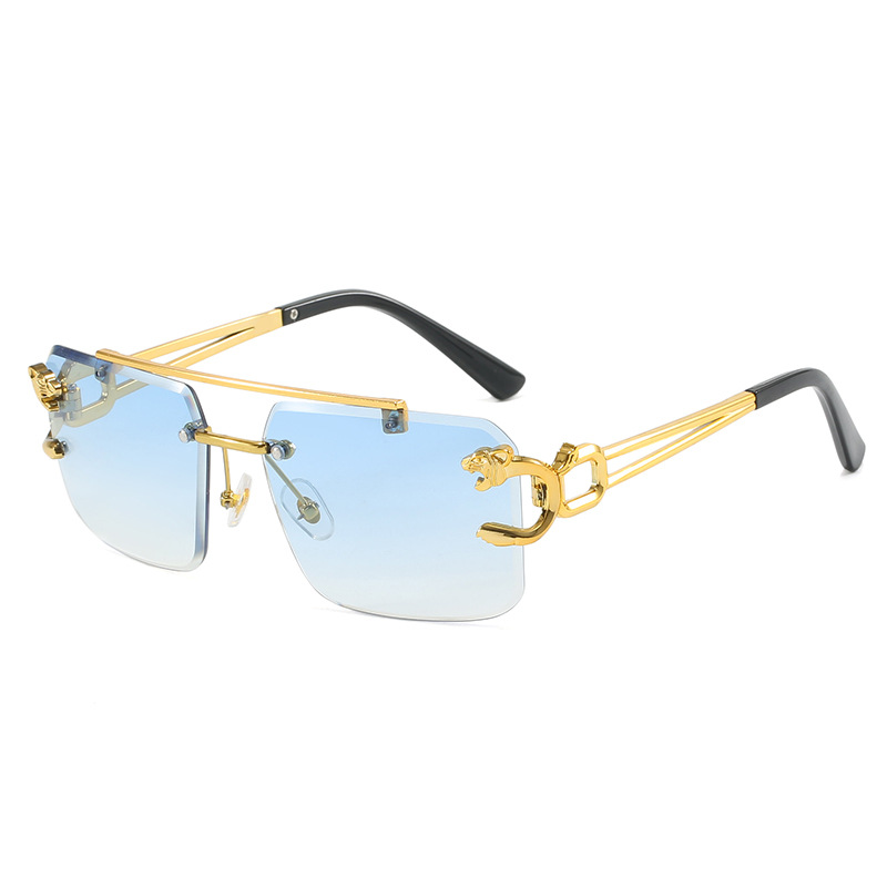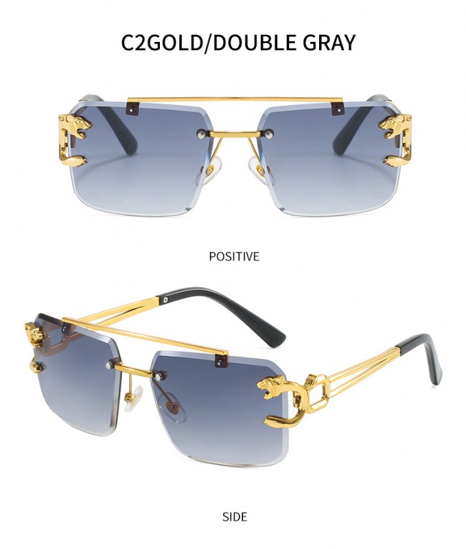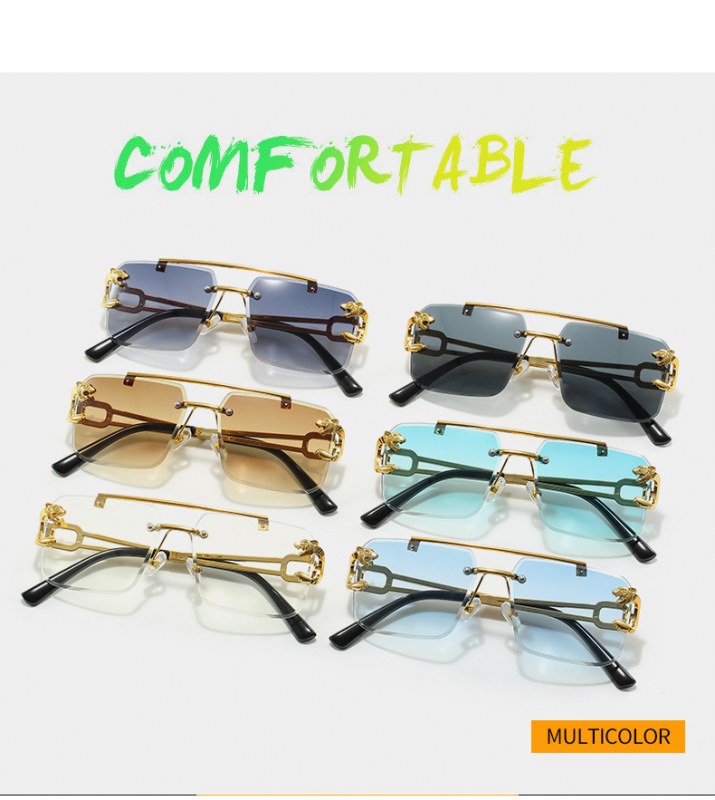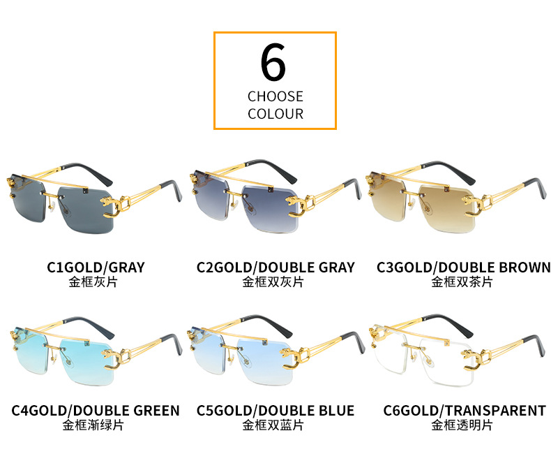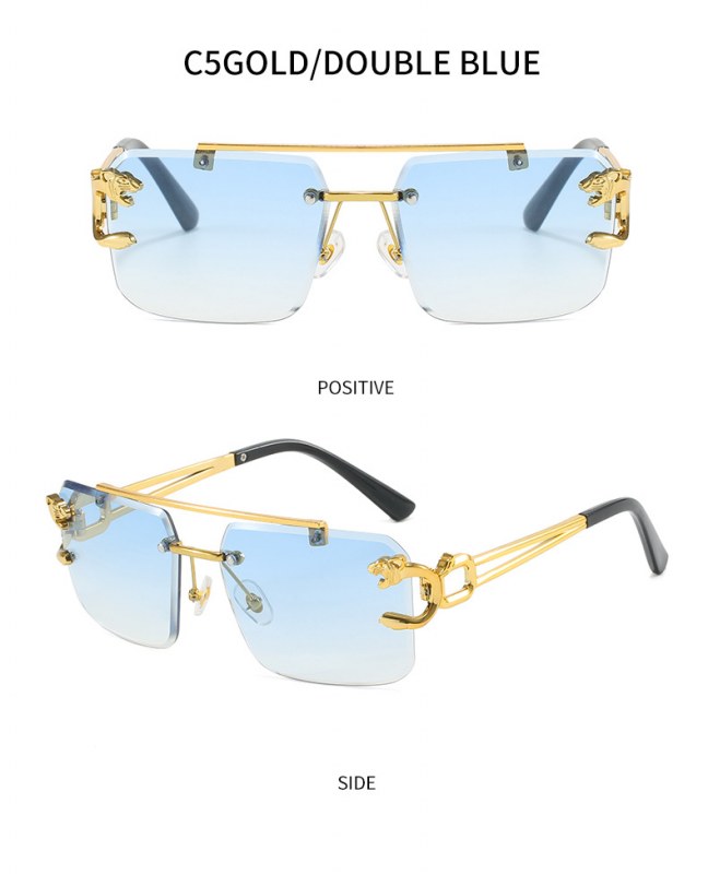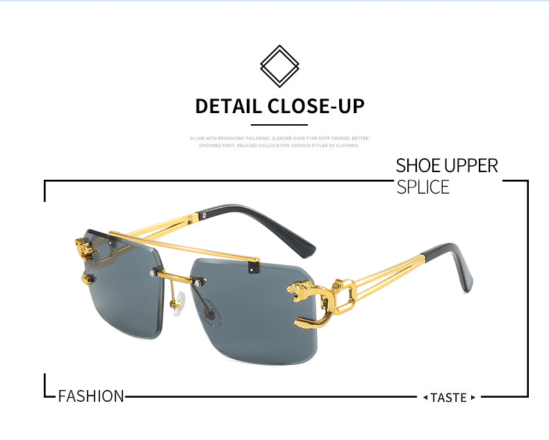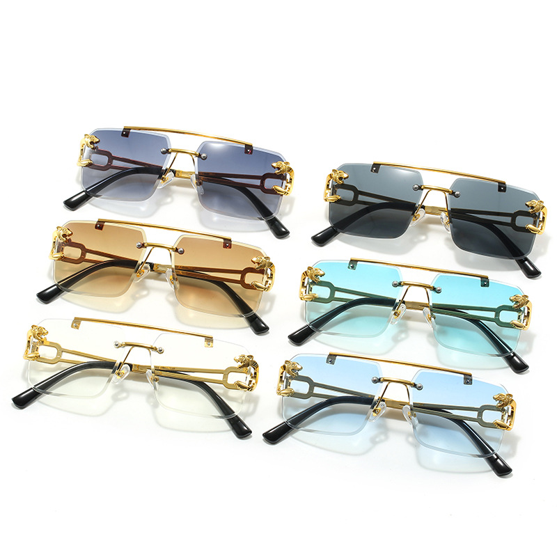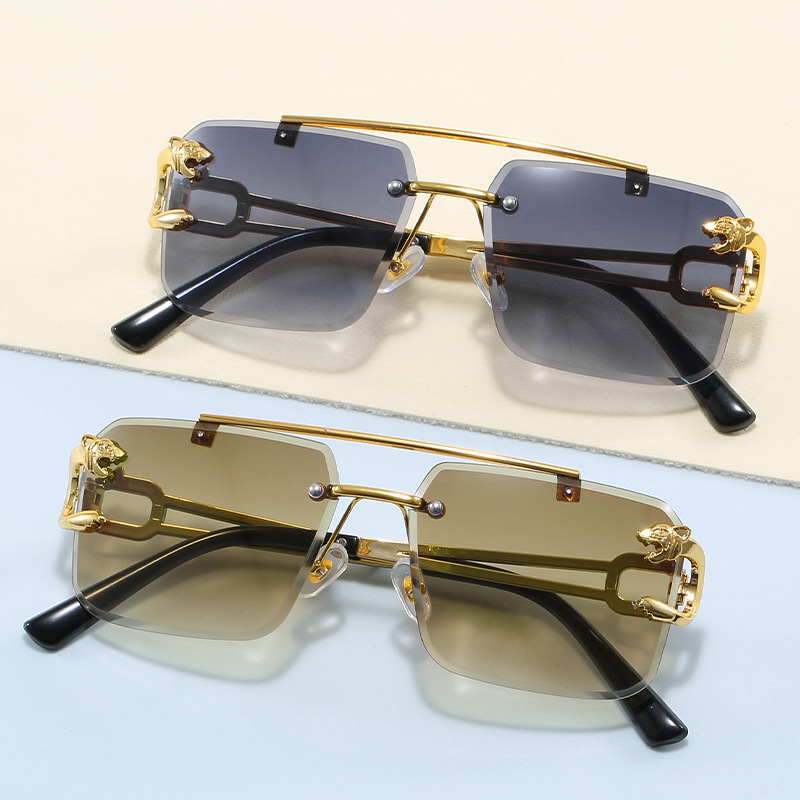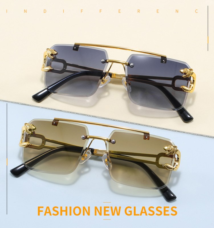 • 新しいヨーロッパとアメリカのメンズレトロダブルブリッジサングラスファッショナブルなヒョウフレームレスカットエッジサングラス女性用