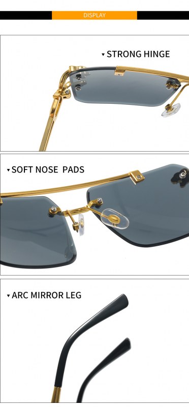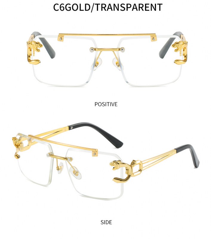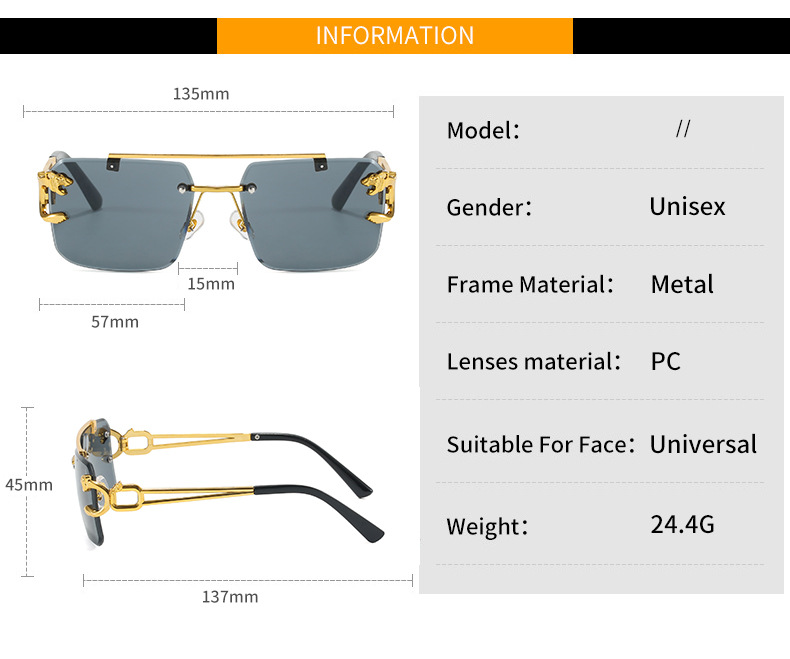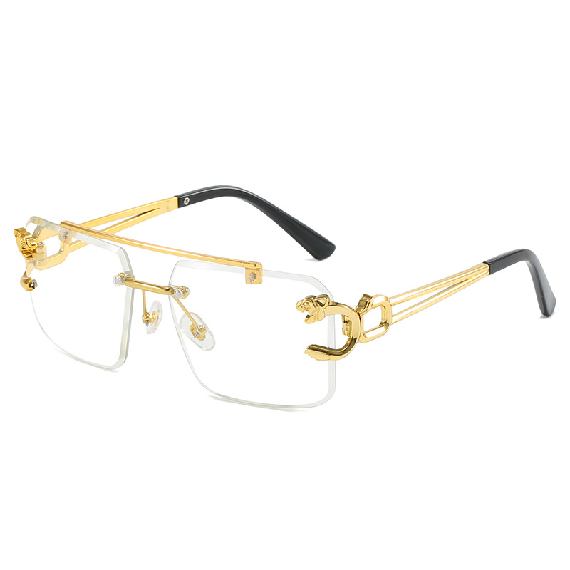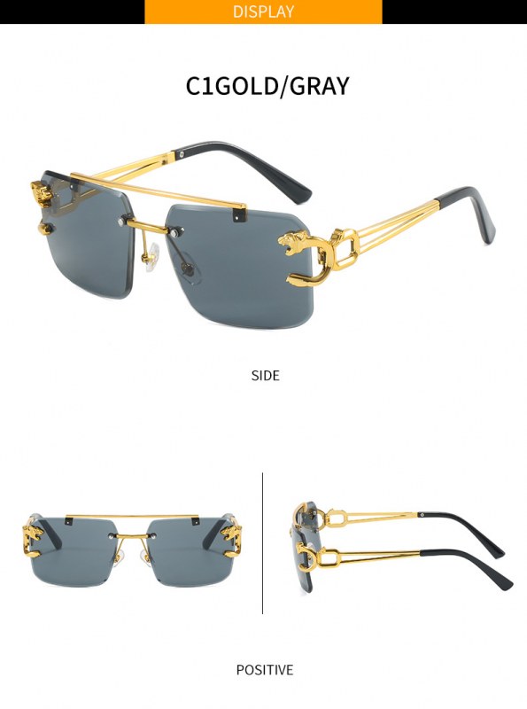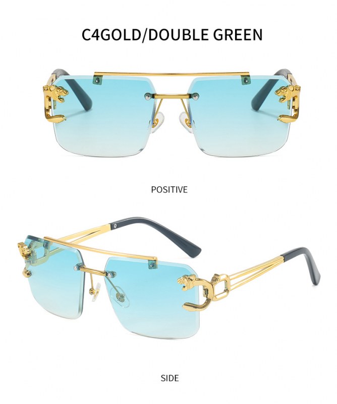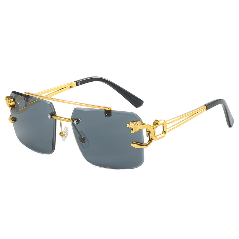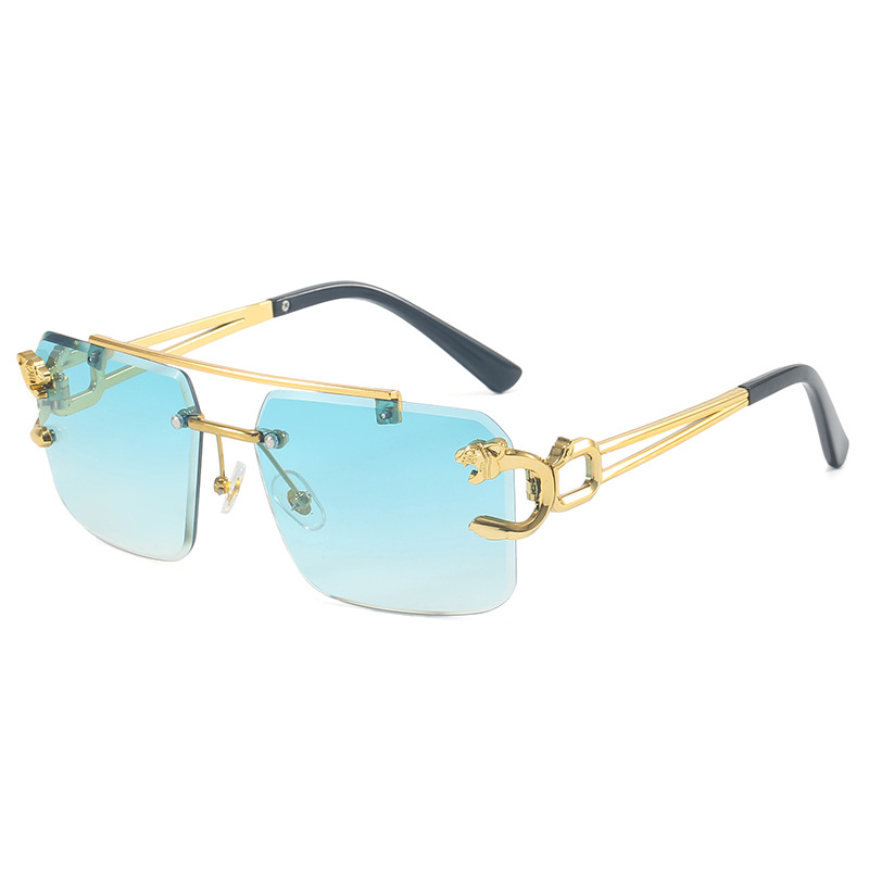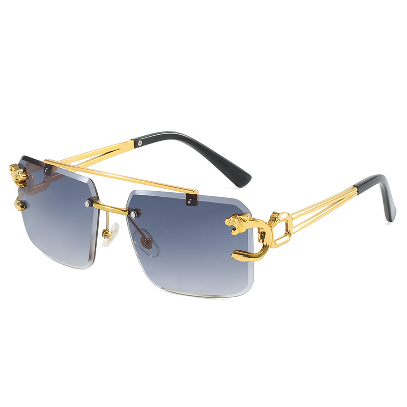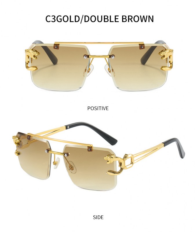 • 新しいヨーロッパとアメリカのメンズレトロダブルブリッジサングラスファッショナブルなヒョウフレームレスカットエッジサングラス女性用