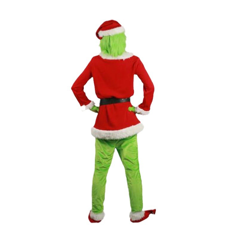 • 大人と子供のためのヨーロッパとアメリカのクリスマス服、緑の髪の怪物グリンチの衣装、マスク、かぶりもの、パーティー衣装