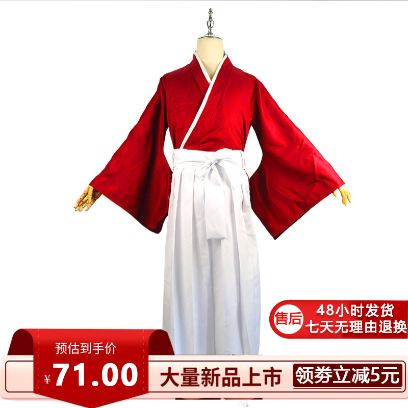 • るろうに剣心 緋村剣心 cos スーツ男性赤い剣道着物コミック展示会ハロウィンコスプレアニメ衣装