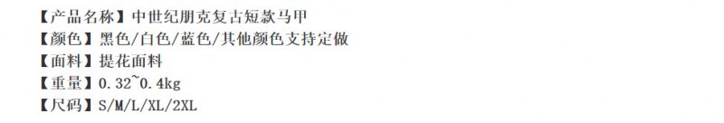 • ヨーロッパとアメリカのメンズ中世風ショートベストゴシックベストステージハロウィンコスチューム