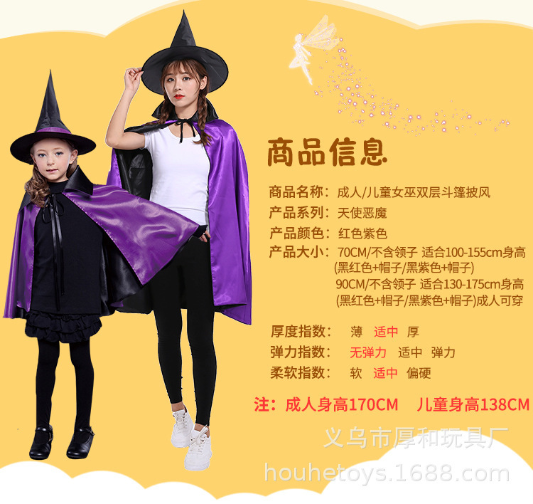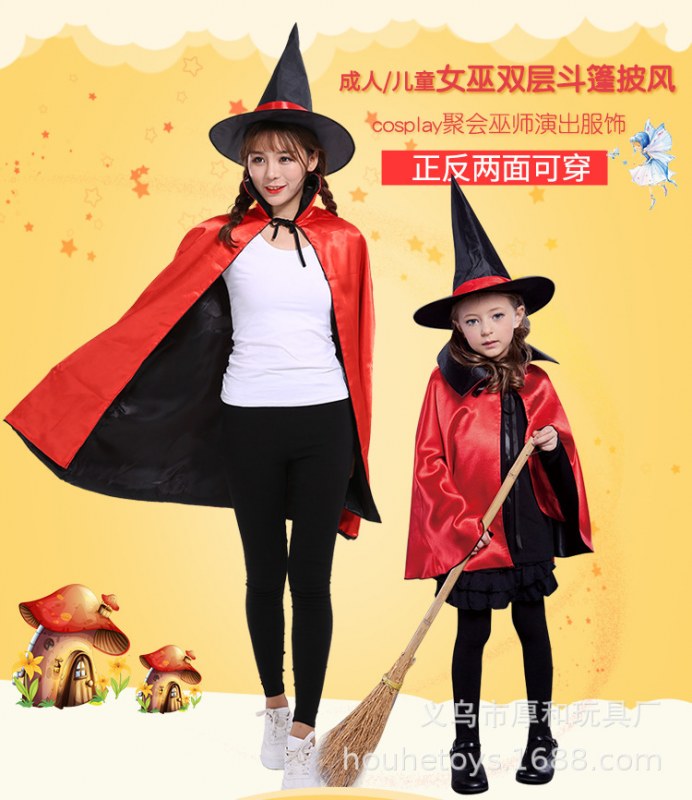 • ハロウィン大人女の子コスチューム魔女ウィザードマントコスプレダブルマントショールパフォーマンス衣装