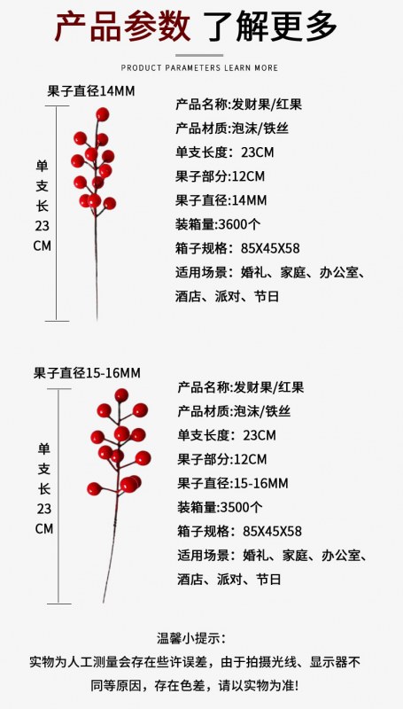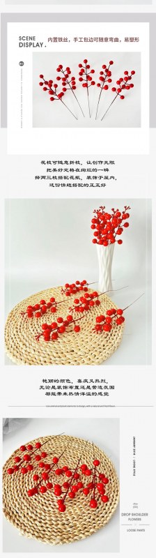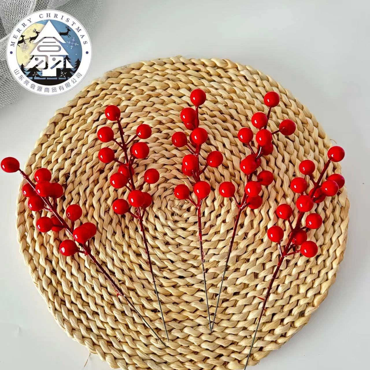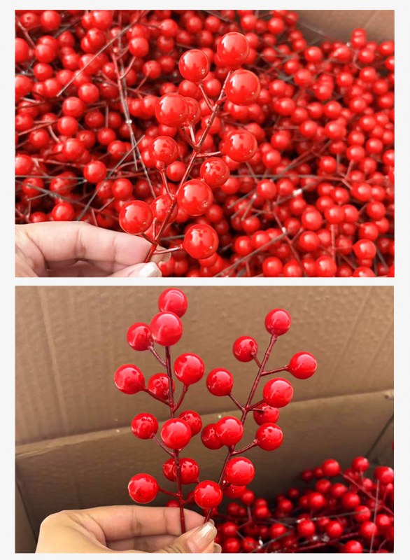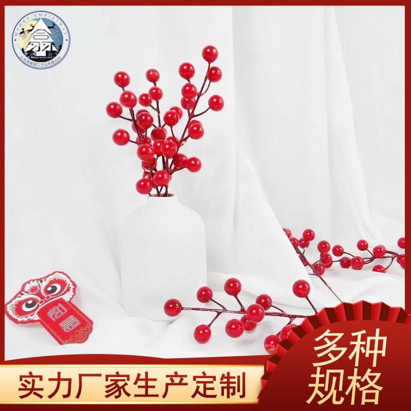 • 卸売縁起の良いフルーツフォーチュンフルーツ 15MM-16MM 特大フルーツ 12 フォーク模擬レッドベリー金葉
