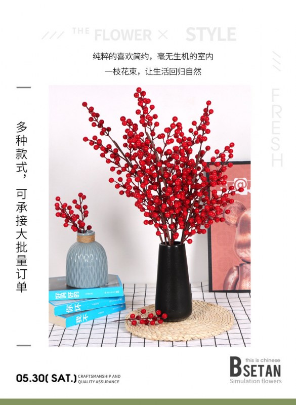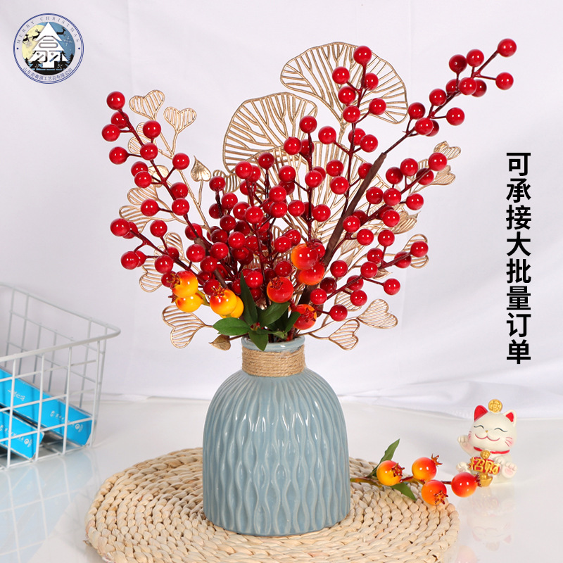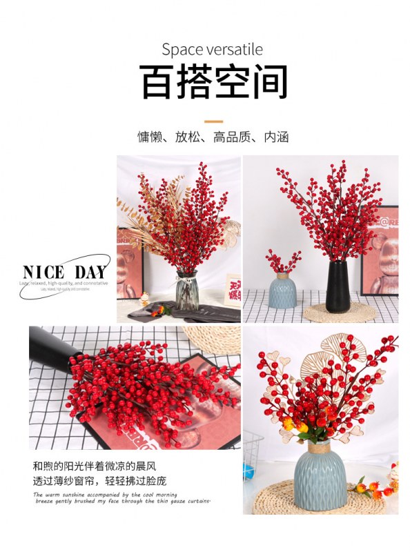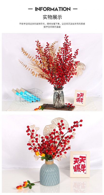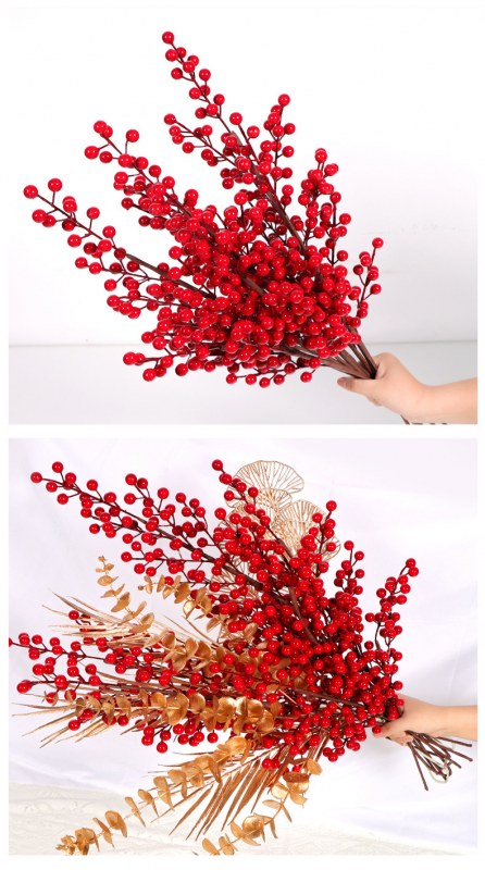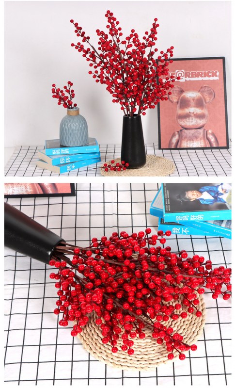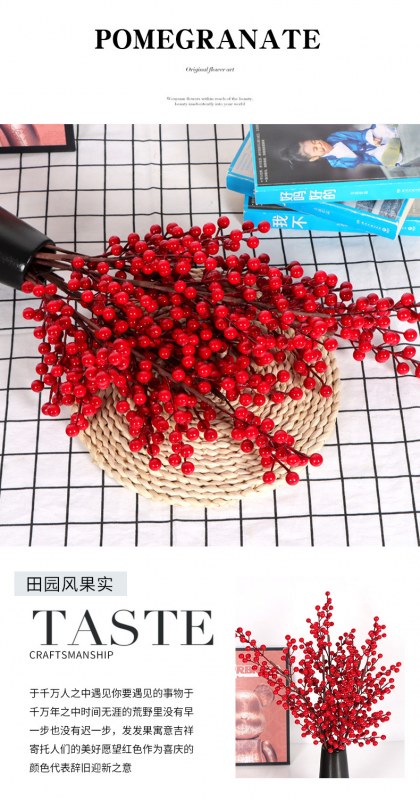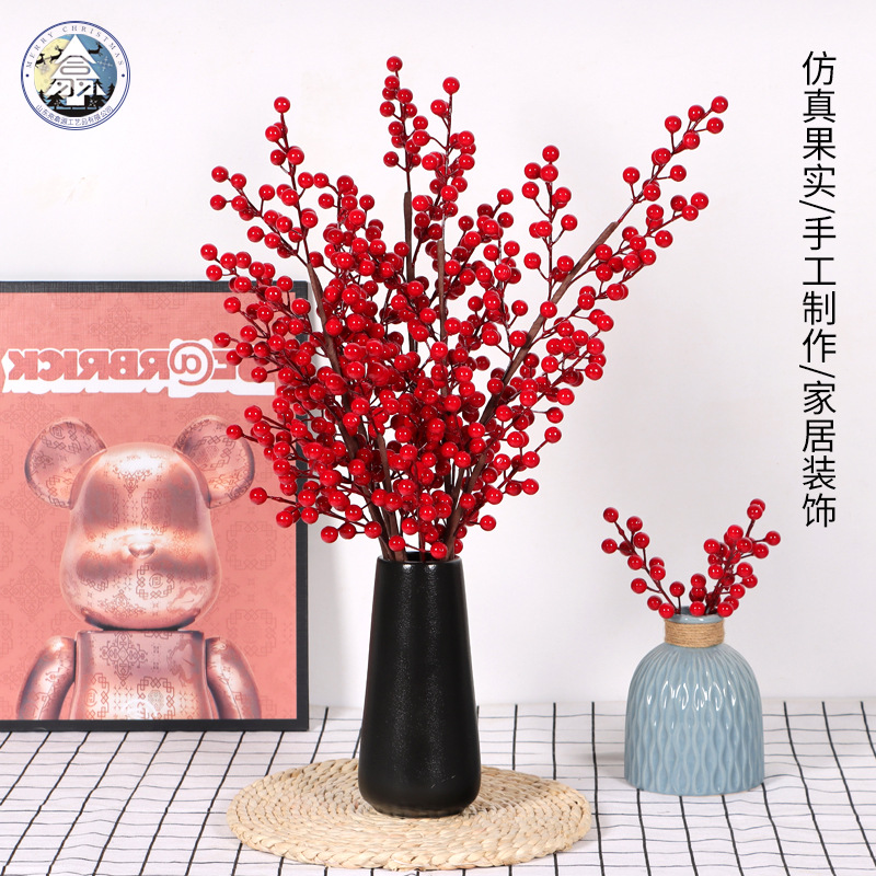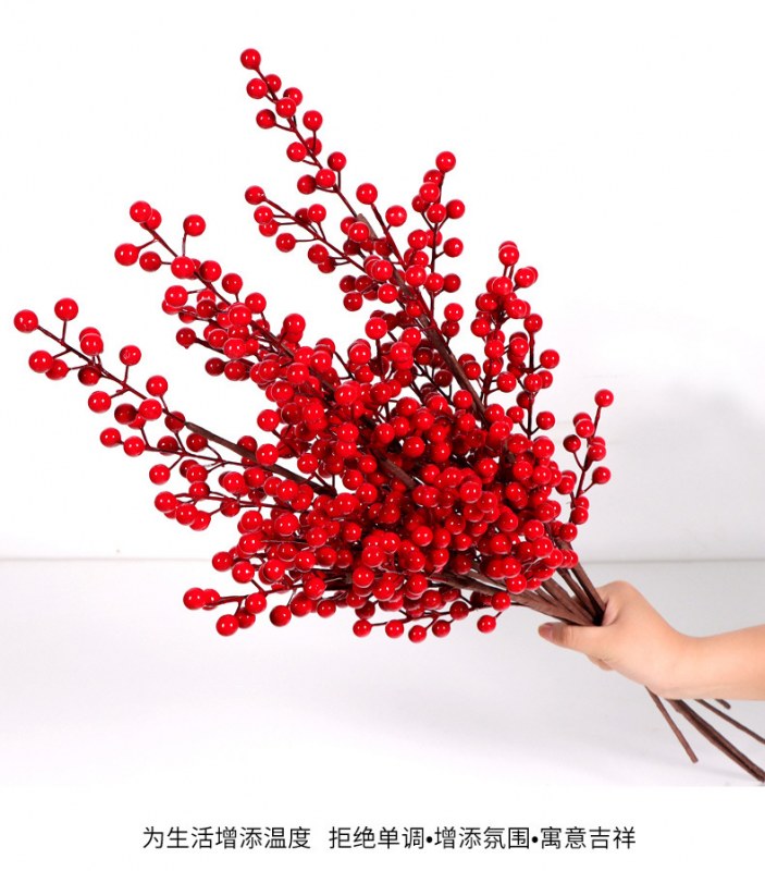 • 泡赤い果実フルーツ組み合わせヒイラギの赤い果実卸売縁起の良い果実フォーチュン フルーツ 4 セット 12 フォーク模擬赤い果実