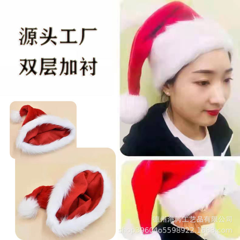 • クリスマスデコレーション 大人と子供用のクリスマスソックス 厚くてパッド入りの二重層の豪華なクリスマスハット