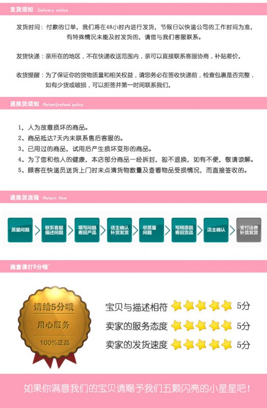 弊社が取り扱っている商品は、自社の海外工場から直送しています。ご入金が確認でき次第に商品を発送いたします。ご注文殺到時や、ご注文数量、種類が多い場合は、発送が遅れる可能性がございます、ご了承ください。ご注文商品の中に在庫がない商品につき、その商品のみキャンセルさせていただき、在庫のある商品のみをまとめて発送させていただきます。また、ご注文後の商品追加や、内容変更、同梱などはお受付しておりません。