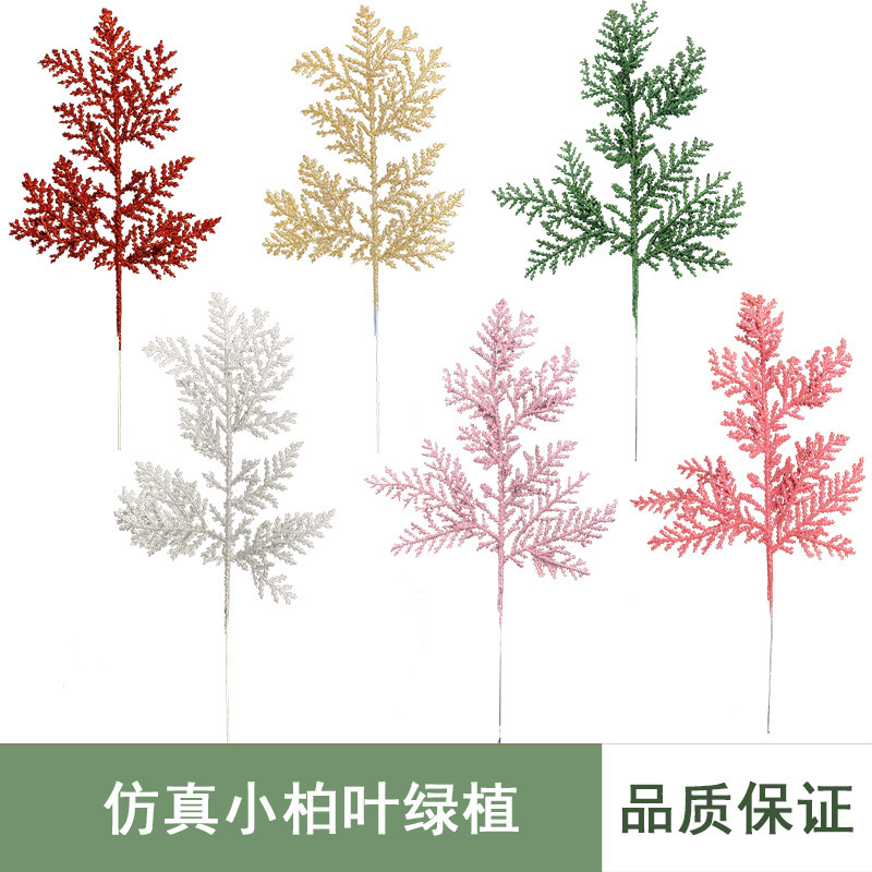 • 新しい模擬緑の植物ヒノキの葉 diy クリスマス小さな花束屋内撮影装飾アクセサリー