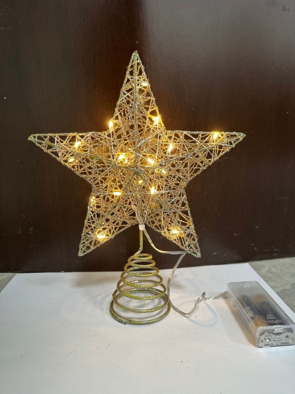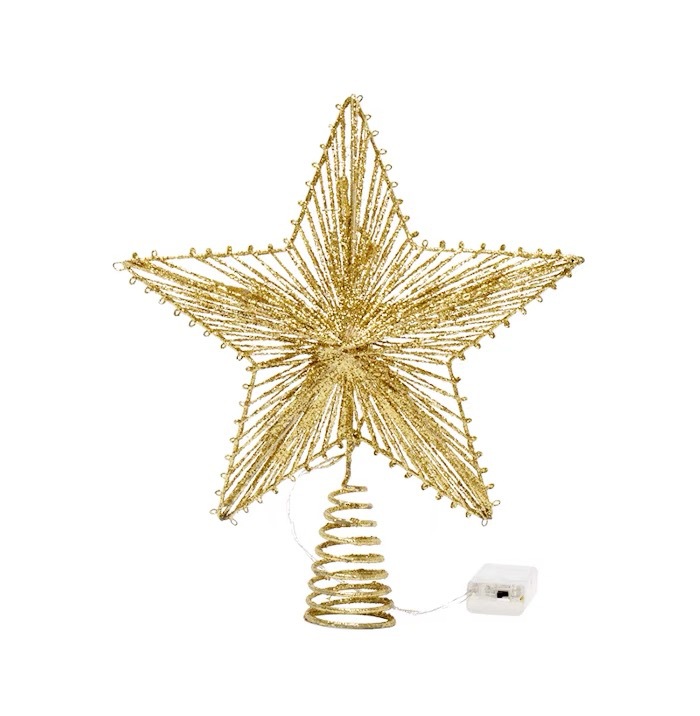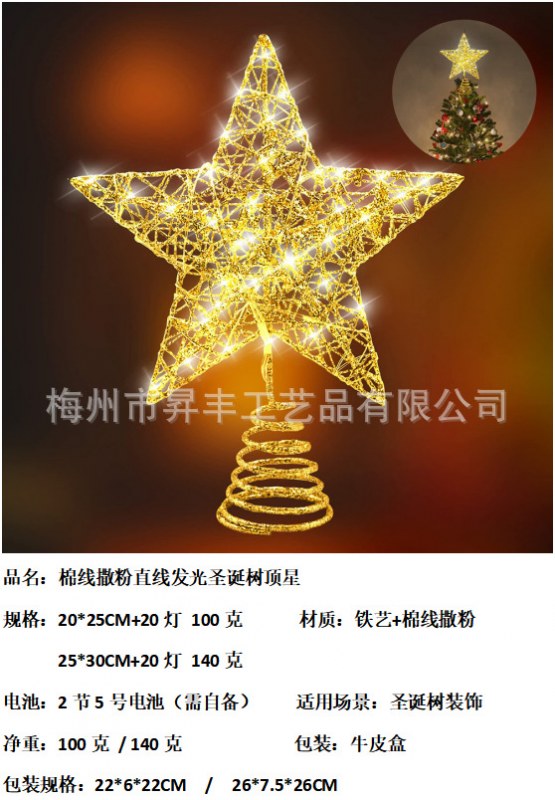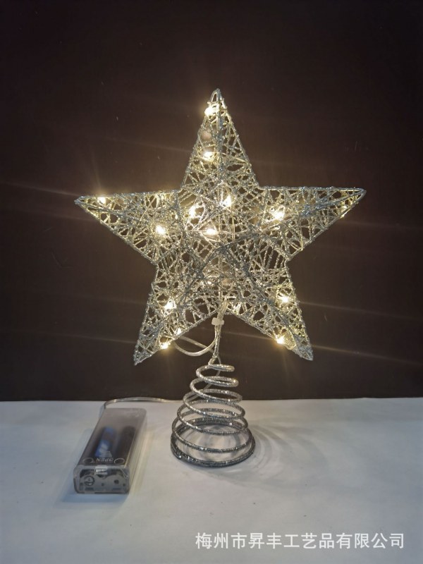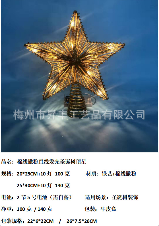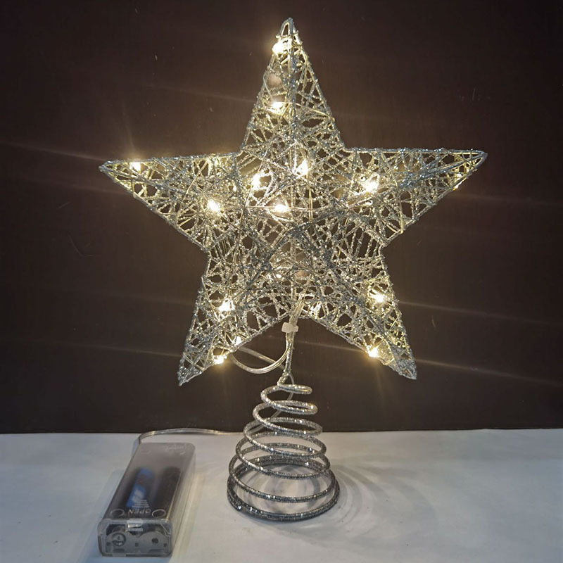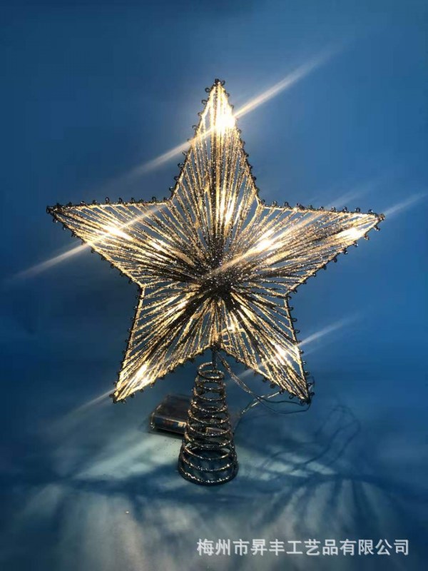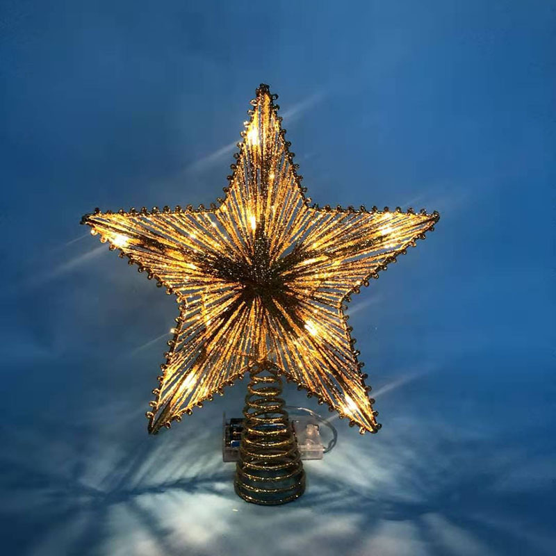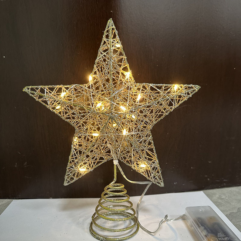 • 綿糸パウダーツリートップスター錬鉄製五芒星LED発光クリスマスツリーデコレーションツリートップライト