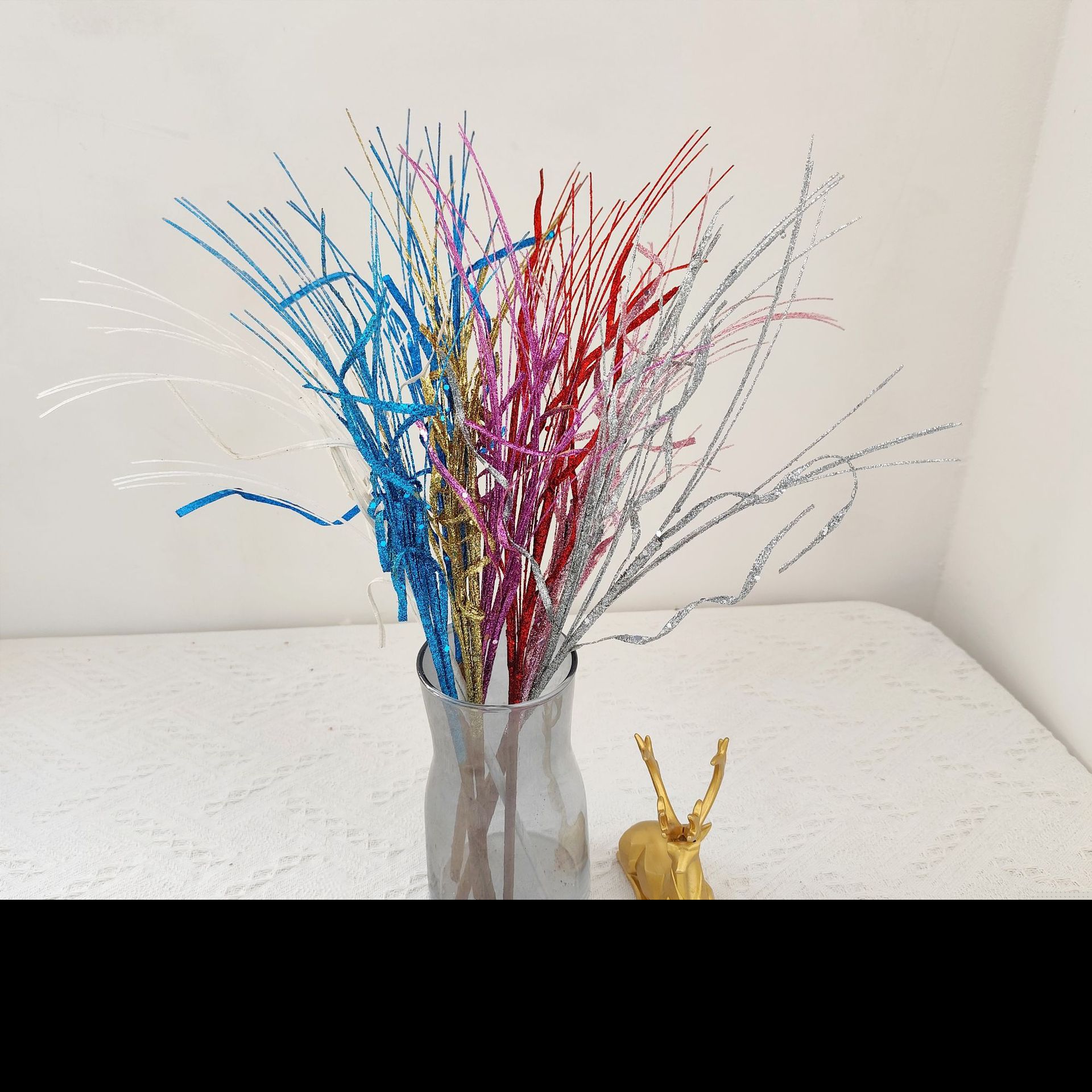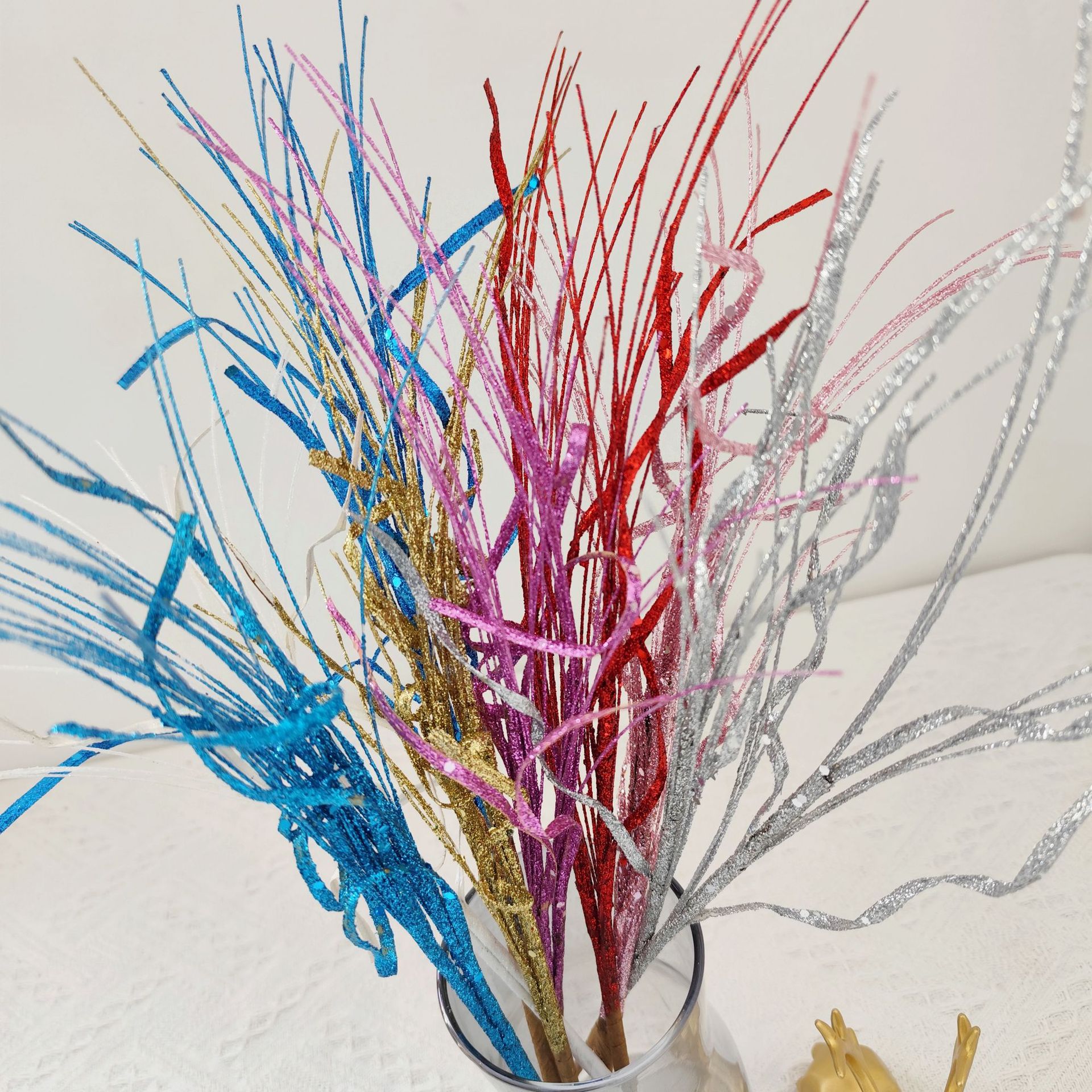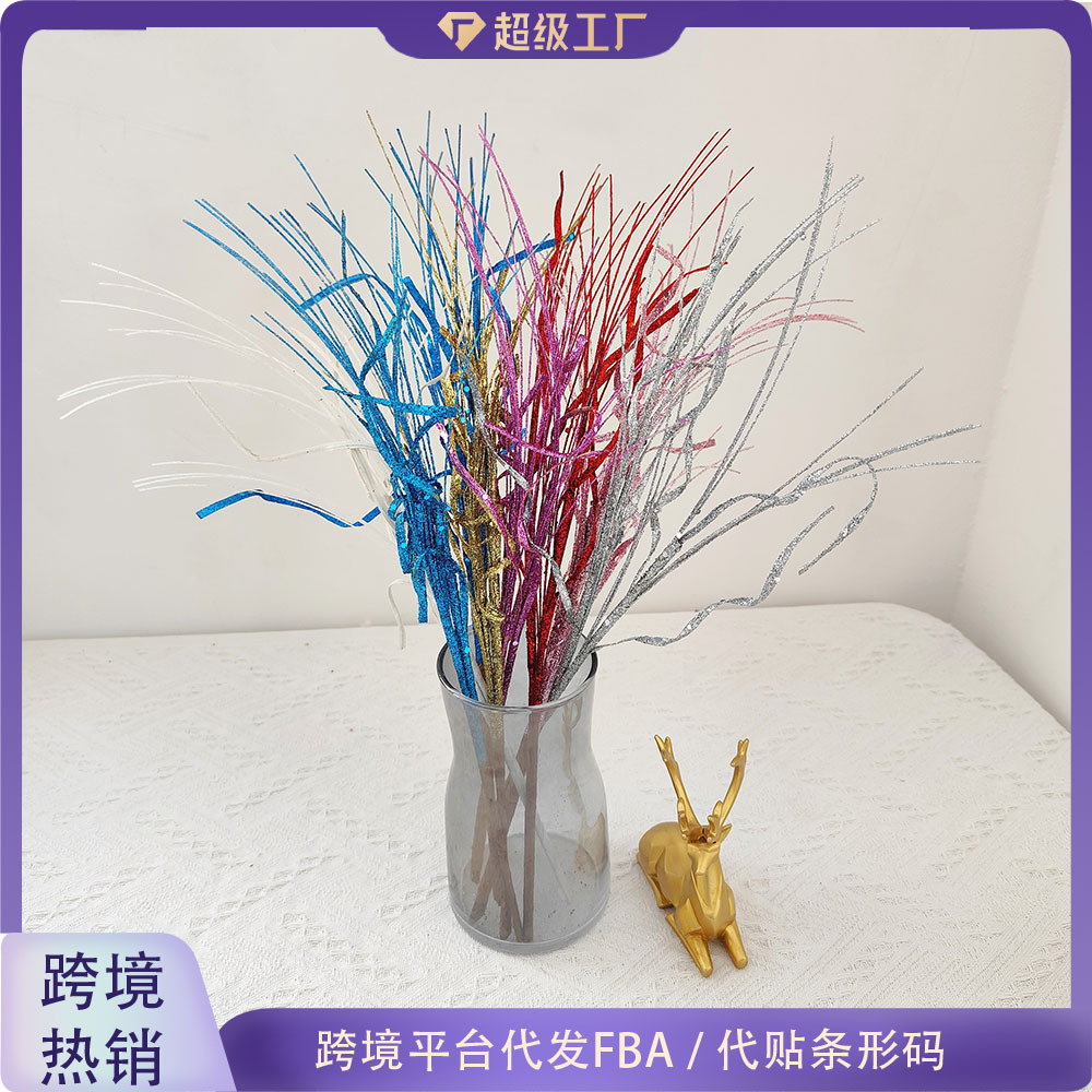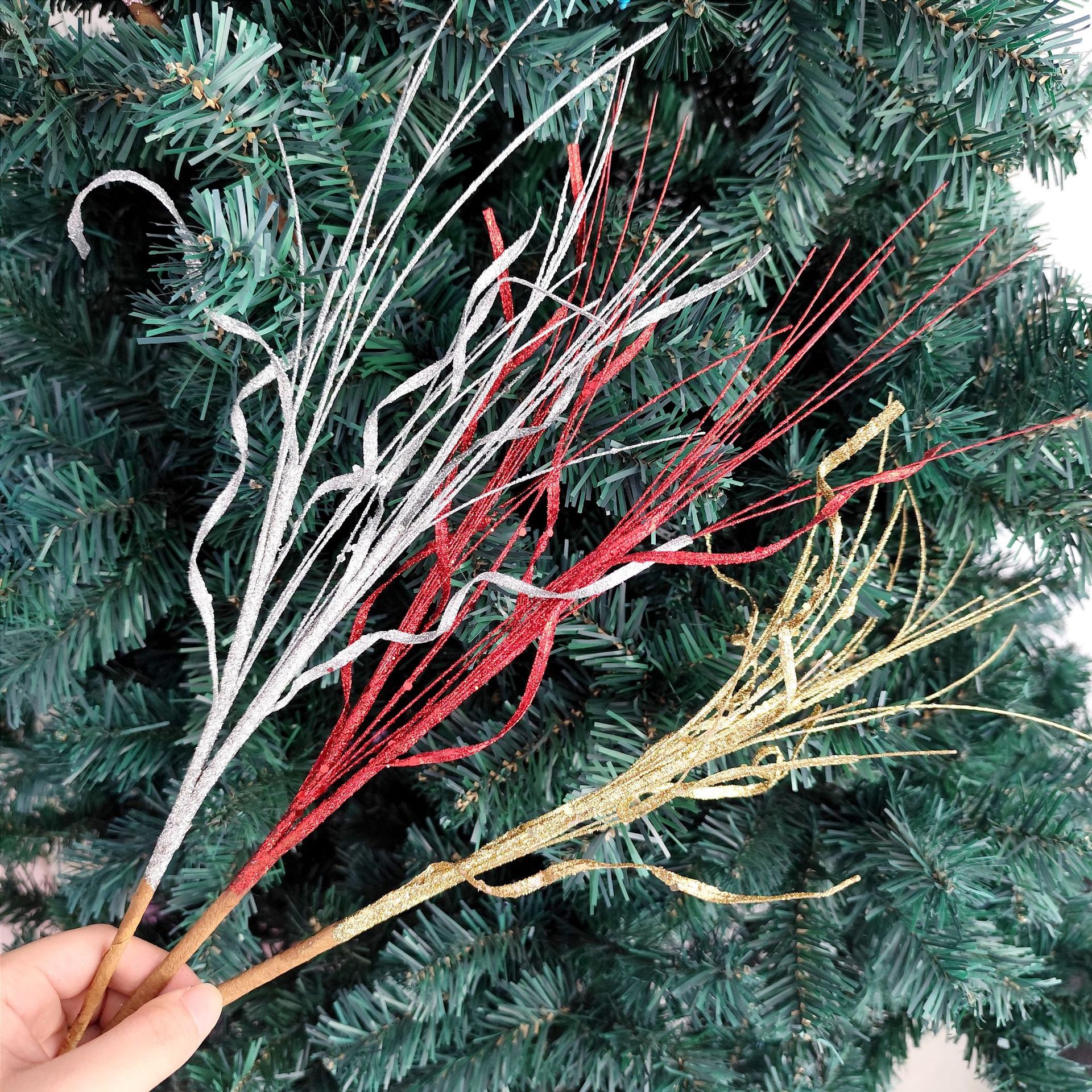• 43 センチメートルクリスマスグリッター装飾スパンコール葉手作り雰囲気クリスマスツリーアクセサリーゴールドファンリボン挿し木