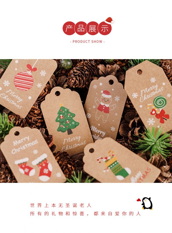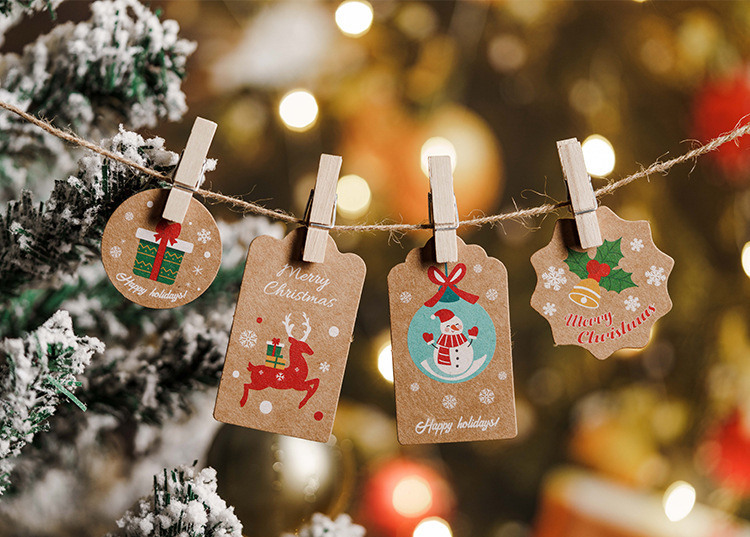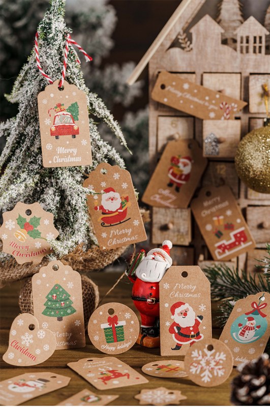 • 厚みのあるクリスマスデコレーションタグプリントサンタクロースタグクリスマスギフトデコレーションカード