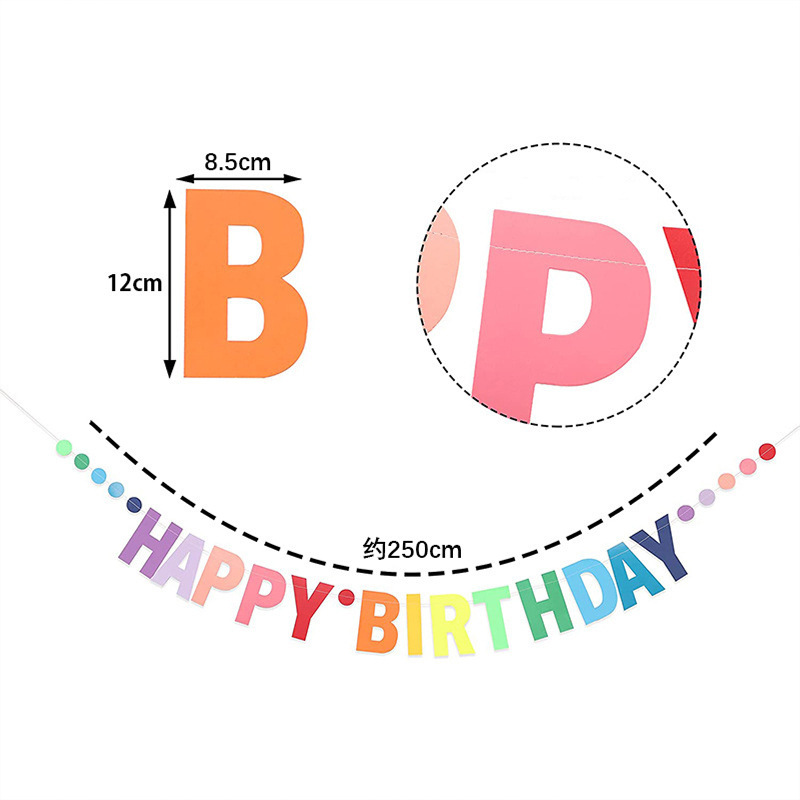 仕様:グラデーションディスクバースデーガーランド(長さ2.75メートル)< br>仕様:カラフルなドットペナント