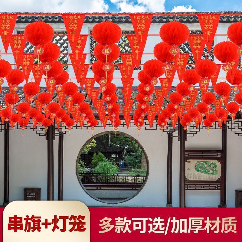 • 庭の装飾カラフルな旗、ペナント、ランタン、小さな吊り旗、結婚式の紐の旗、新年の結婚式用品、春祭りのハッピーキャラクターラテアート
