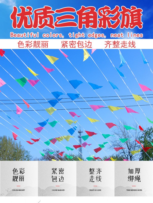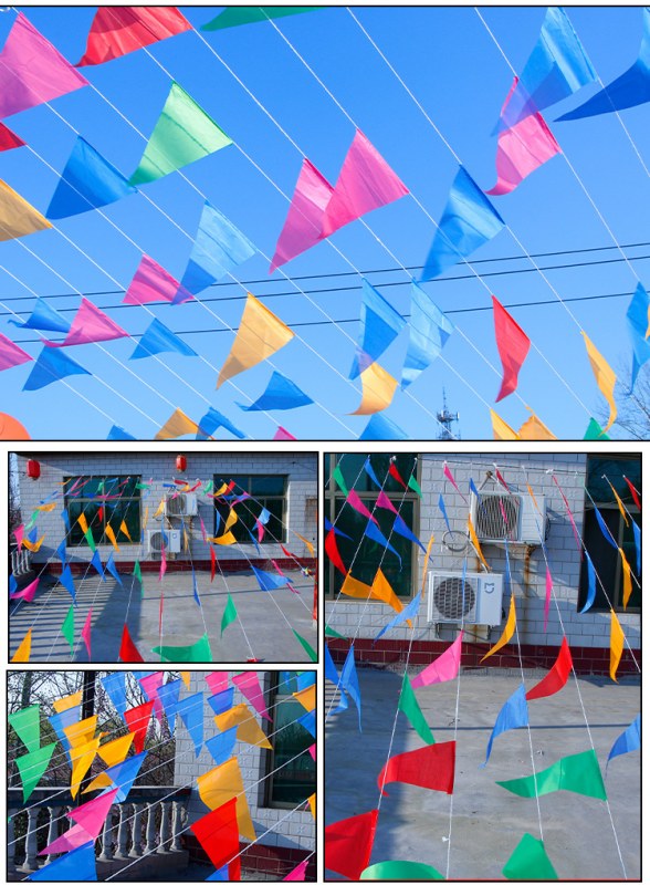 • 三角旗 紐旗 小さなカラフルな旗 建設現場警告旗 オープニングレイアウトサイト カラフルな旗 吊り旗装飾