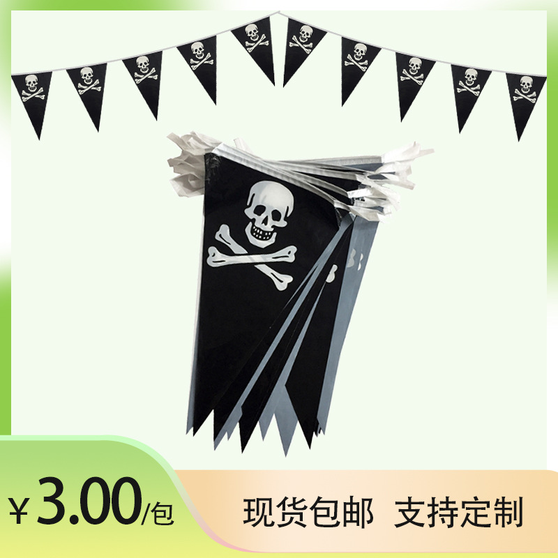 • ハロウィンシーン装飾海賊スカルストリングフラグ海賊テーマパーティー装飾誕生日フラグ