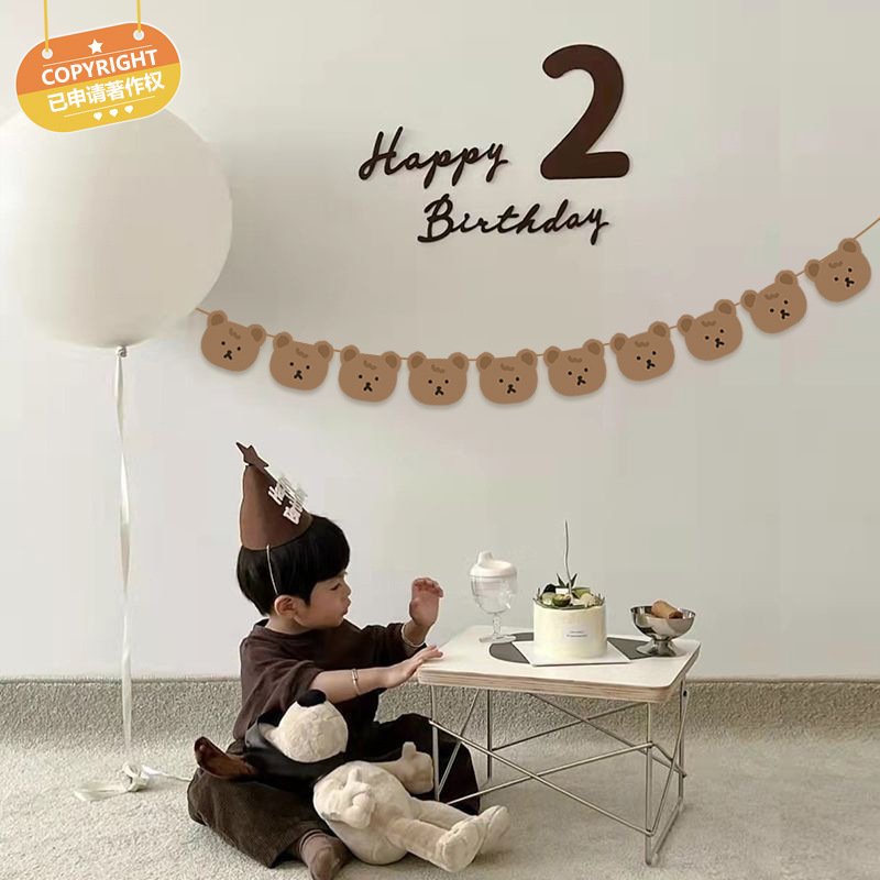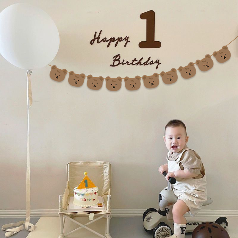 • レトロ漫画紙クマプルフラグヒグマ Zaizai 子供の誕生日パーティーの装飾プルバナー背景壁