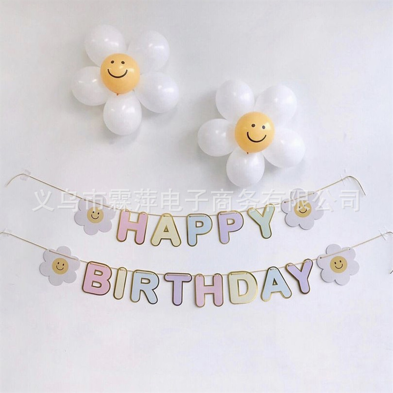 • 韓国イン小さなデイジーマカロンハッピーバースデーフラグプルフラワー菊インターネット有名人の赤ちゃんの写真の装飾