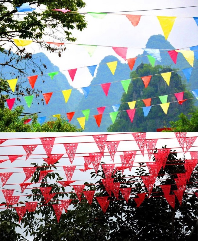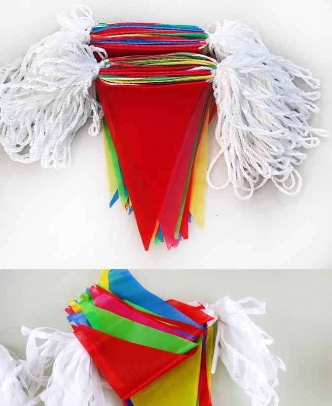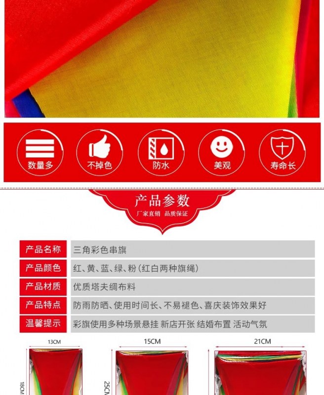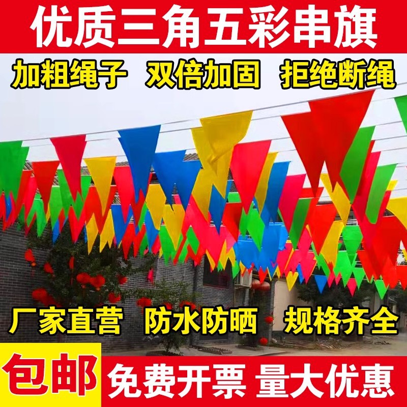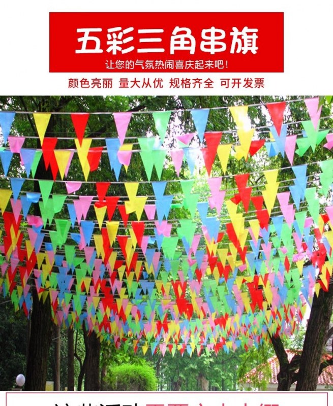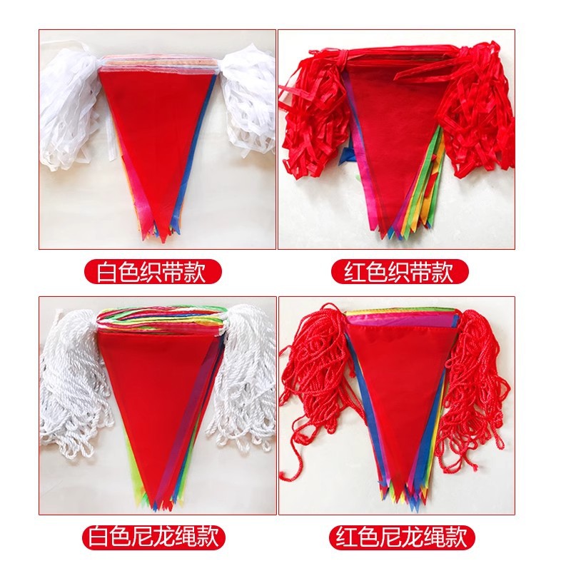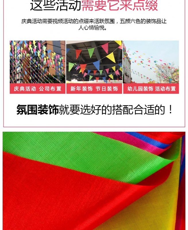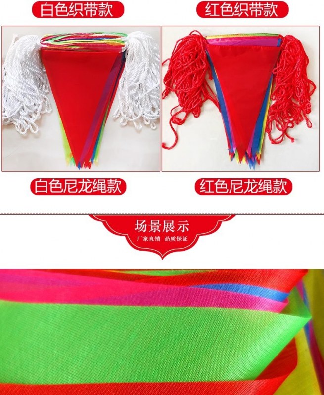 • 卸売カラフルな旗、三角紐旗、小さなカラフルな旗、装飾的な結婚式のリボン、カラフルなストリップ、三角旗、結婚式建設現場の警告を開く