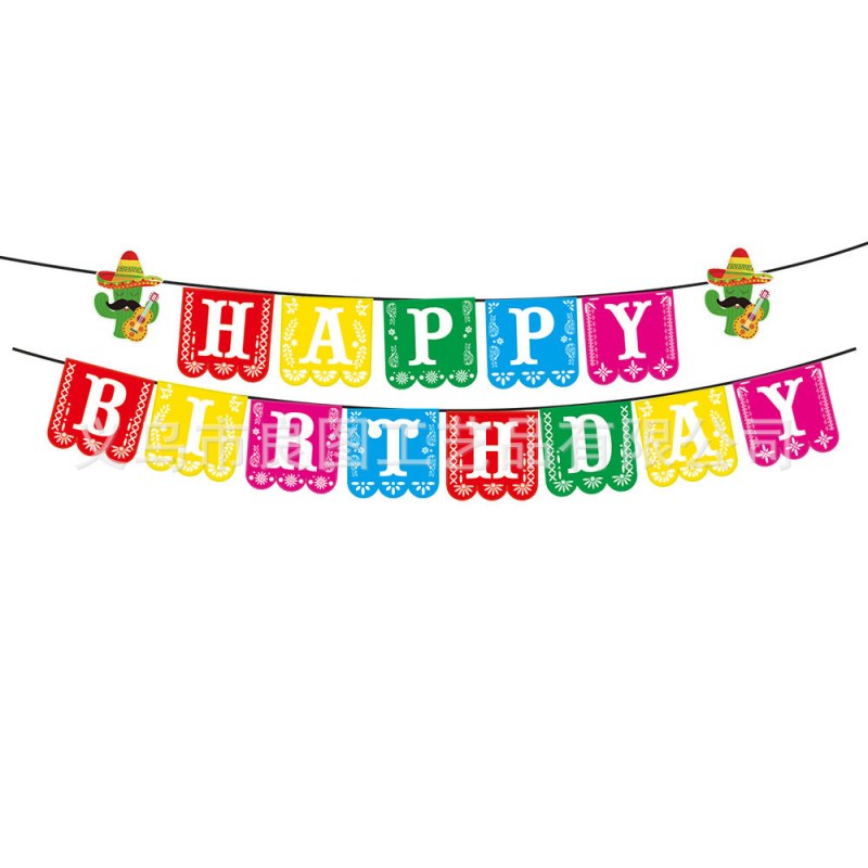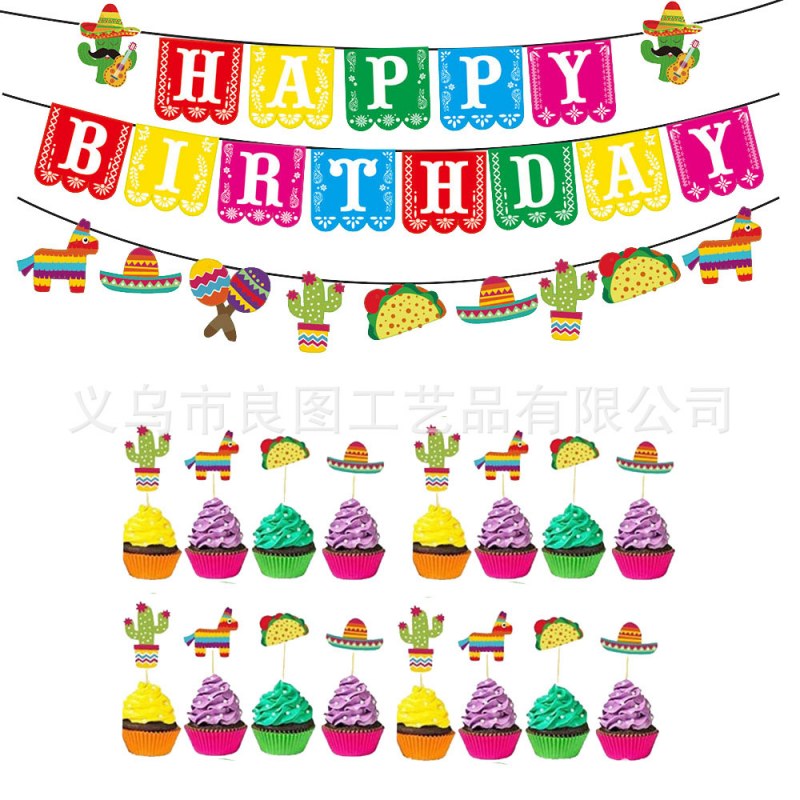 • 2024 新しいメキシコがテーマの誕生日パーティーデコレーション 3 点セット フラグとケーキアレンジメント フィエスタ 死者の日