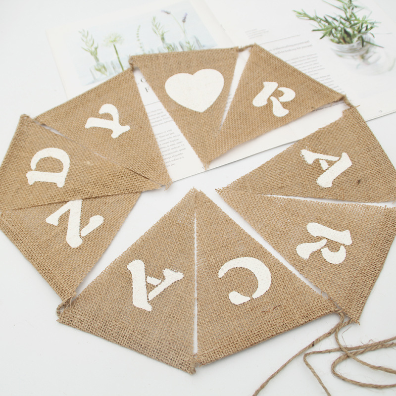 • 結婚式赤ちゃんの誕生日パーティーの装飾黄麻布ペナント幼稚園黄麻布旗バナー