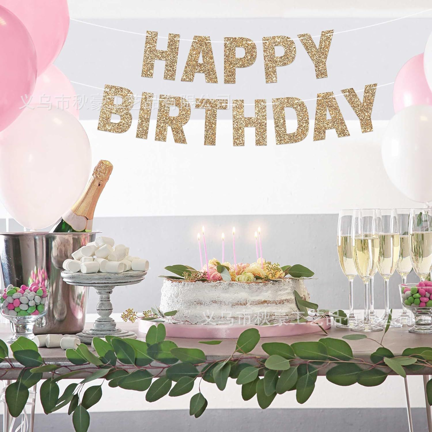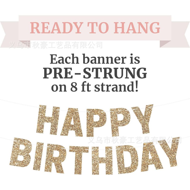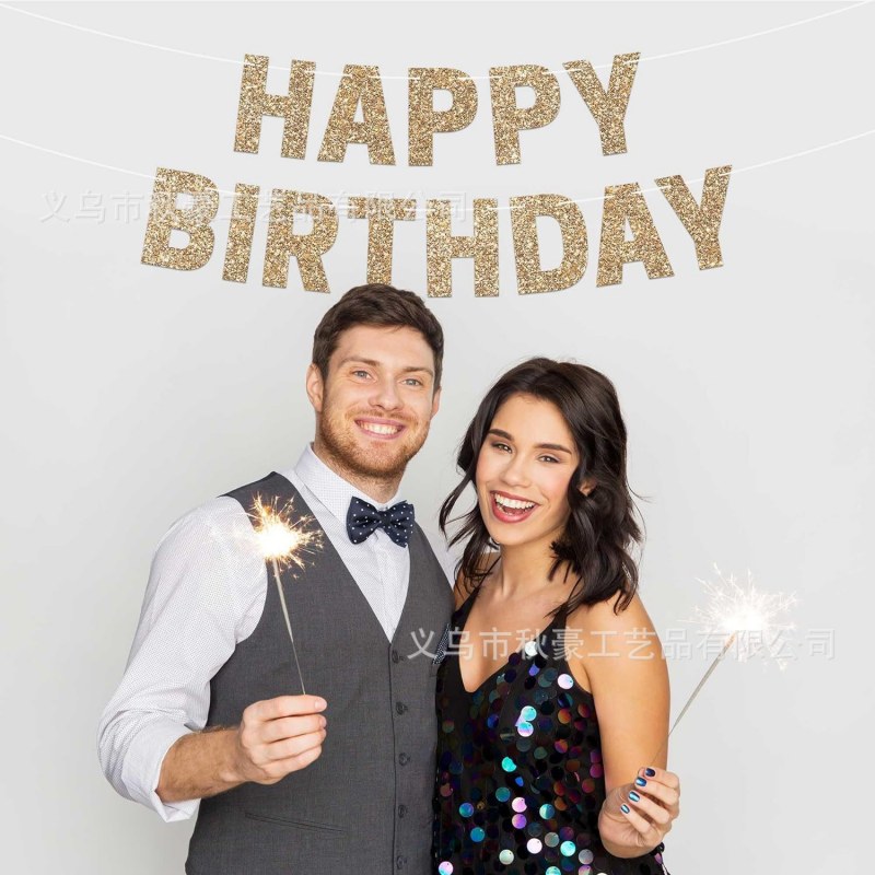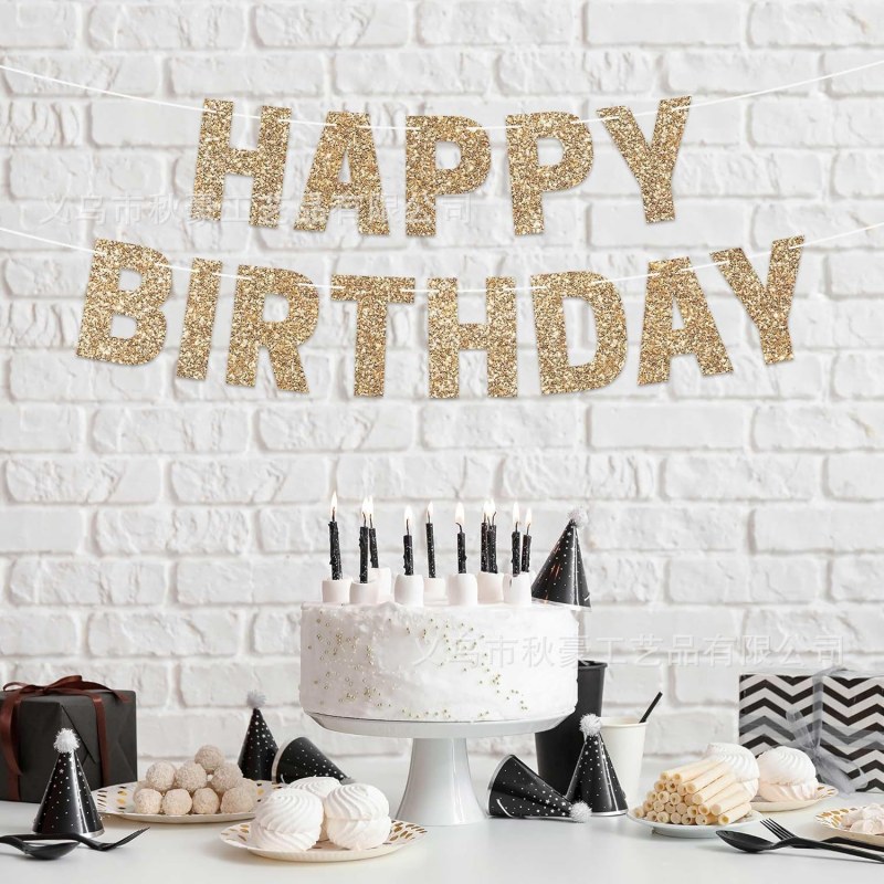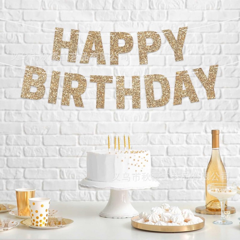 • 2024 新しい誕生日フラグパーティーデコレーションシャンパンカラーハッピーバースデーバナーグリッター段ボール