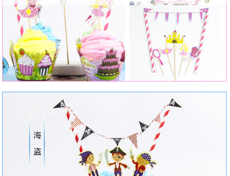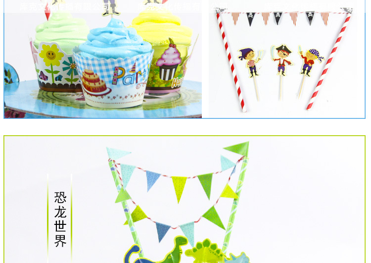 • 誕生日ケーキ旗装飾旗恐竜海賊漫画デザート紙挿入卸売
