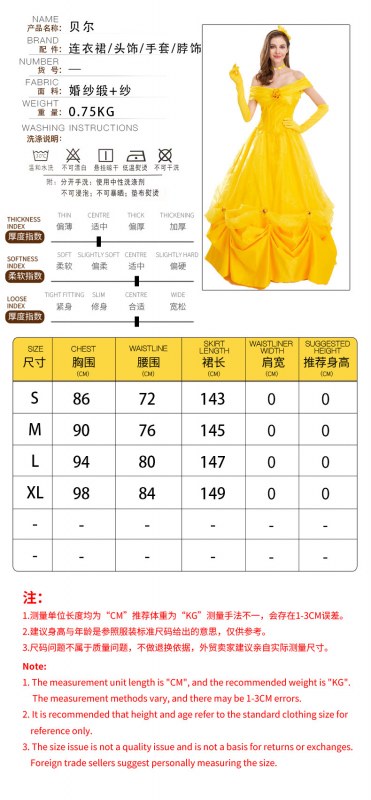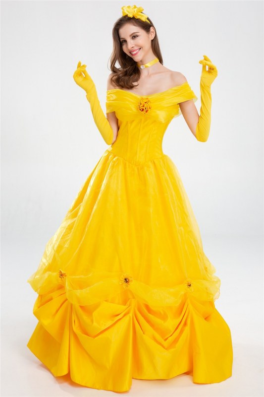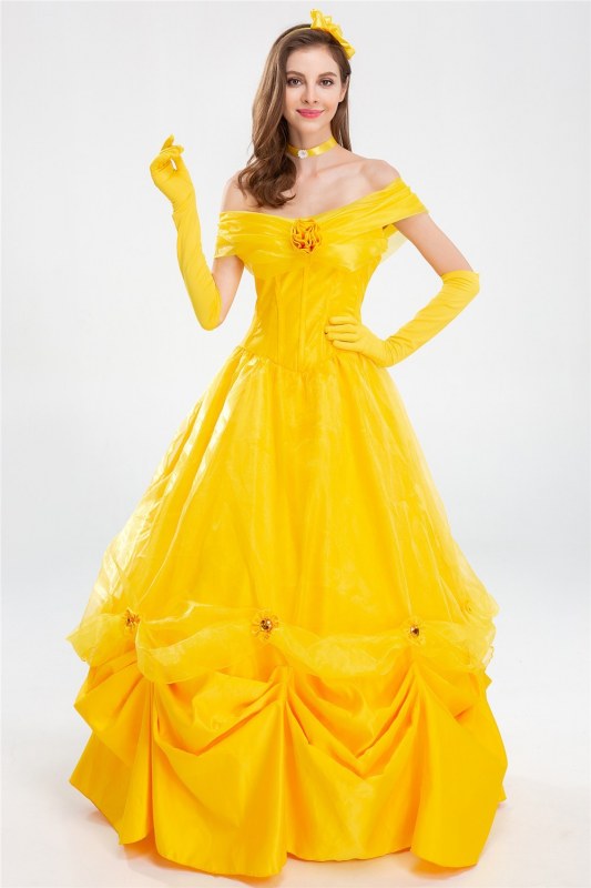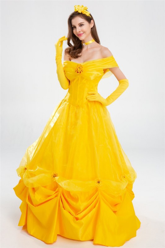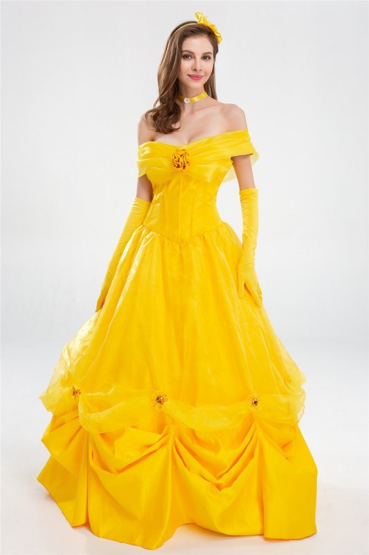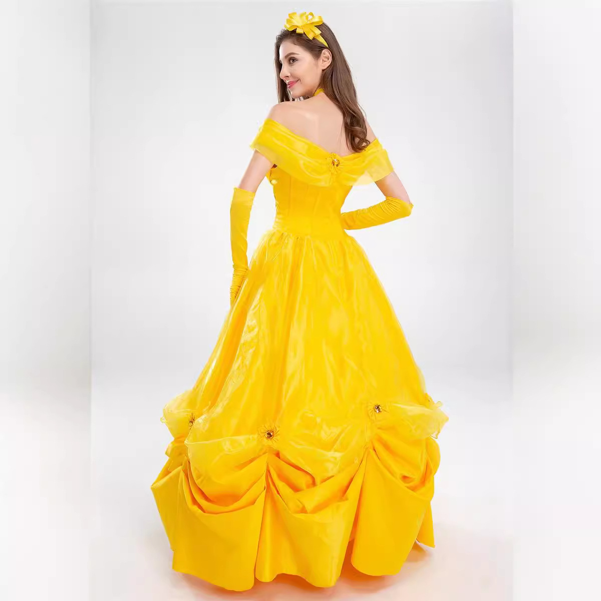 • ハロウィン COS 美女と野獣 おとぎ話 劇 プリンセス ベル 大人 女性 イエロー ロングドレス パーティーコスチューム