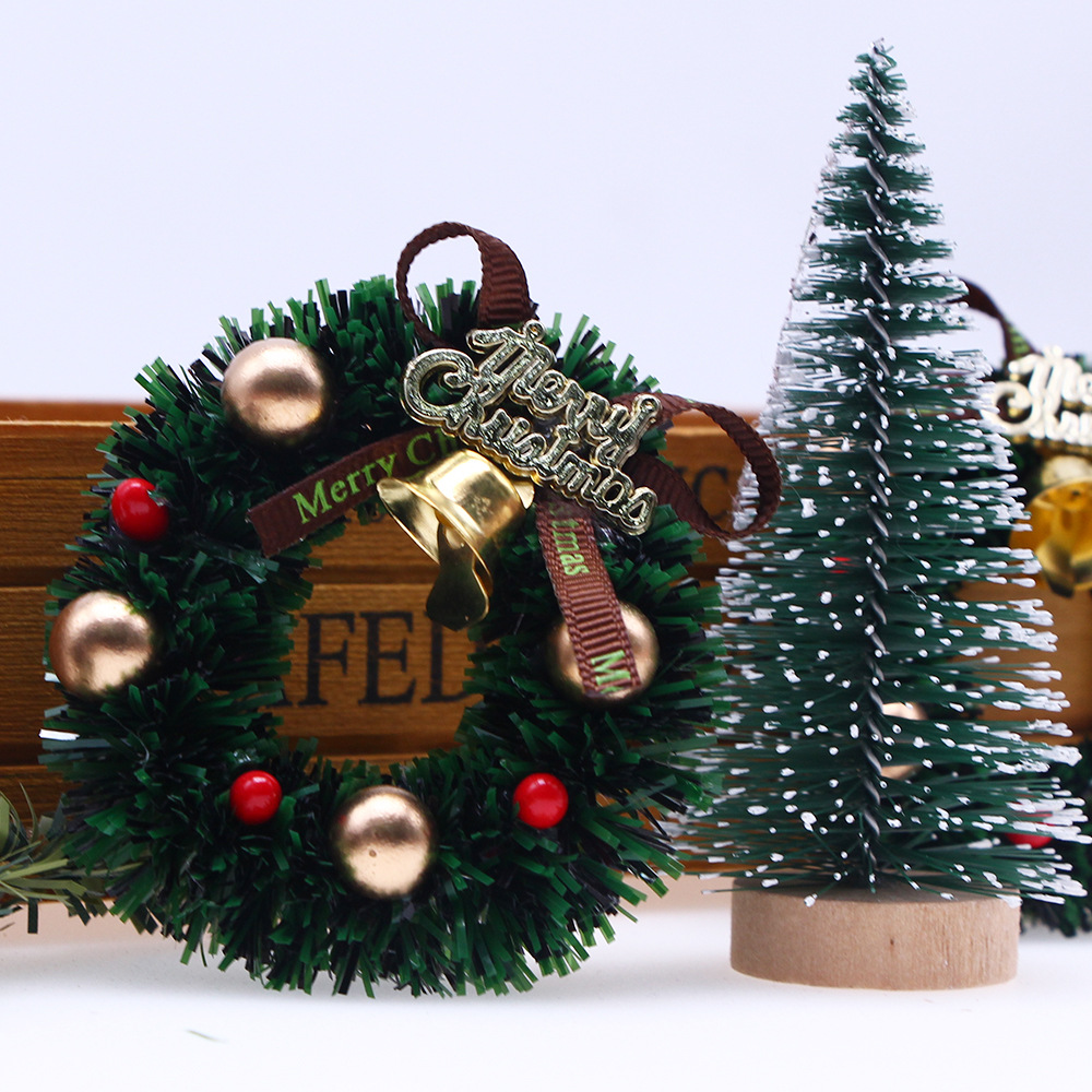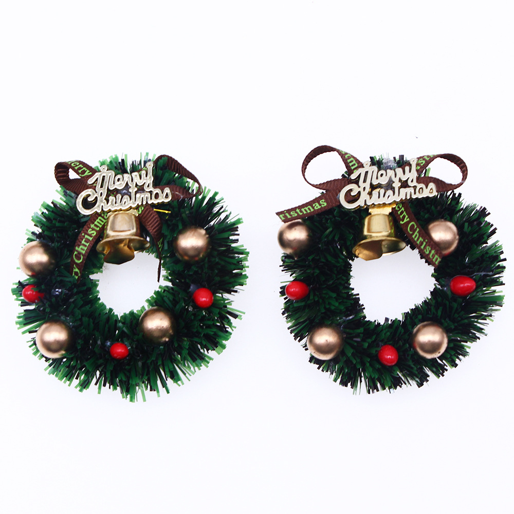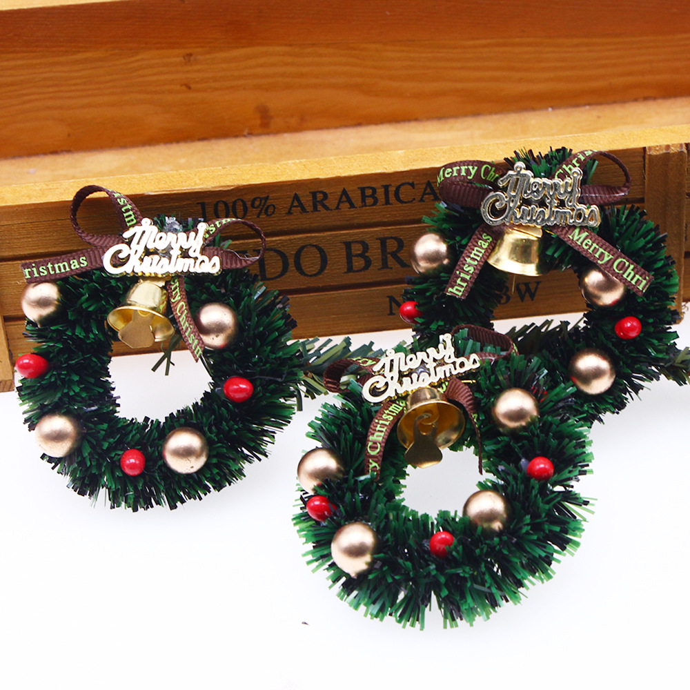 • ドールハウス 6cm クリスマスガーランド、鐘付きミニクリスマスリング、ミニチュアシーンモデルアクセサリー