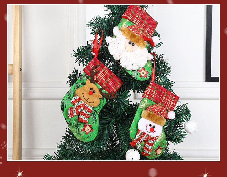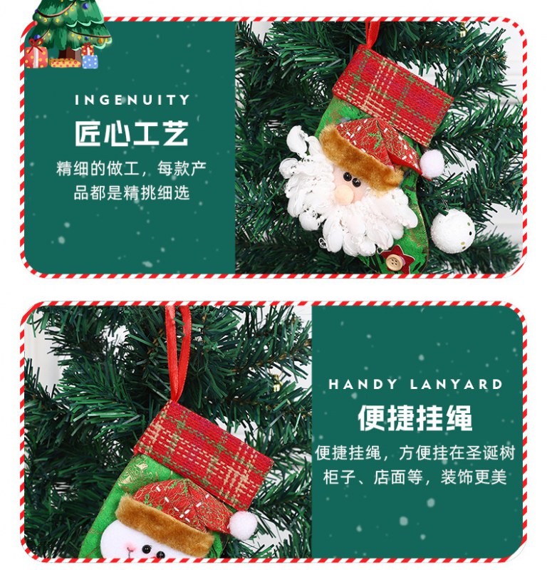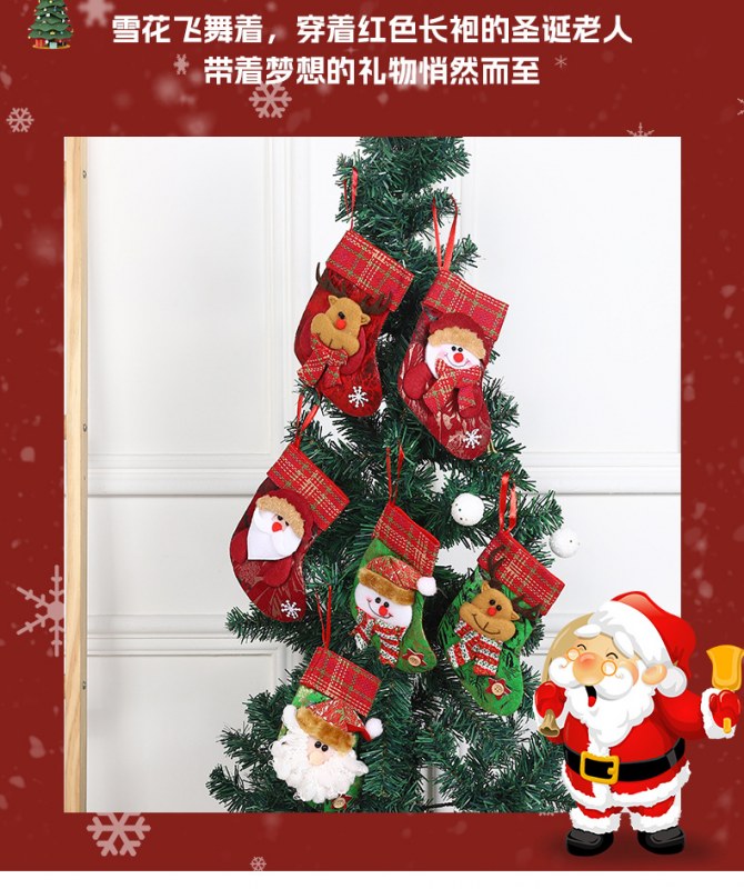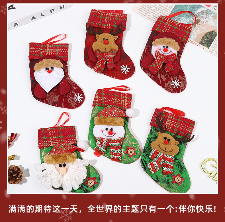 • 新しいクリスマス装飾ソックス、漫画サンタクロースソックスペンダント、クリスマスツリーオーナメントソックス