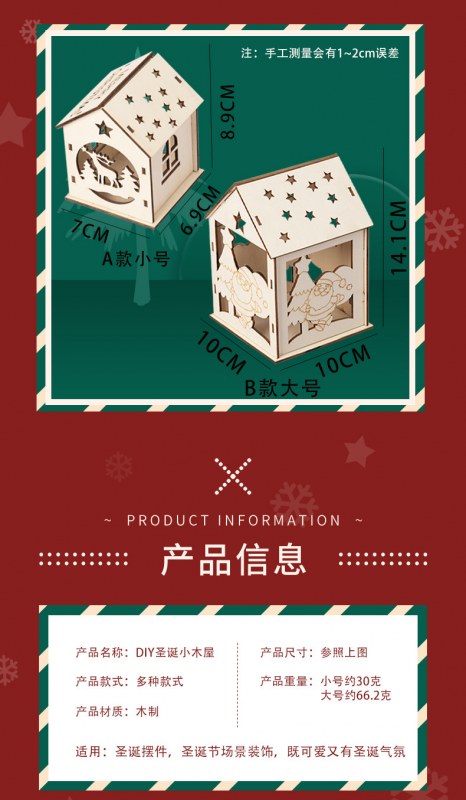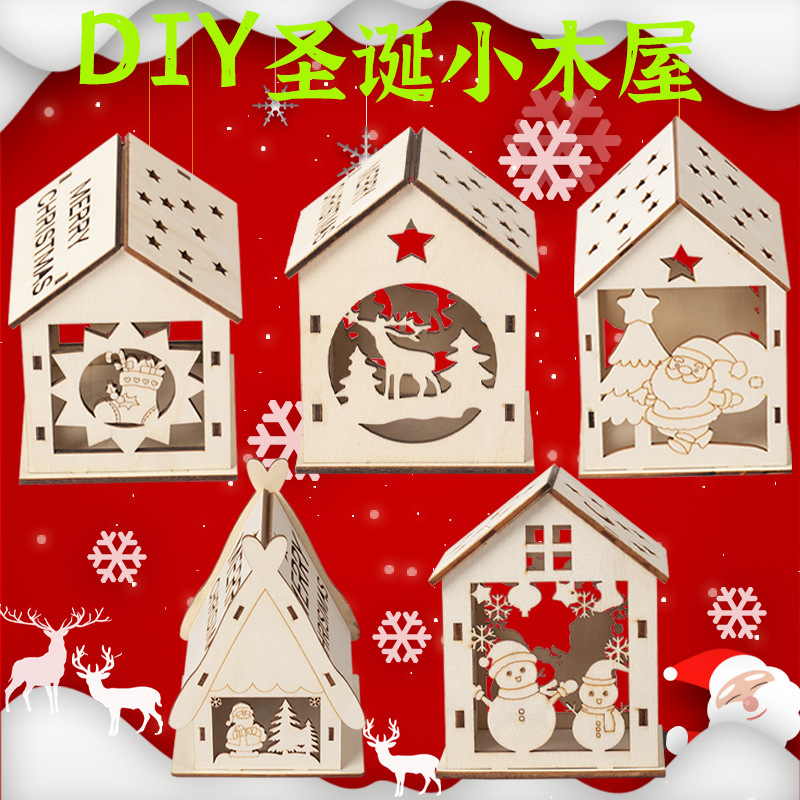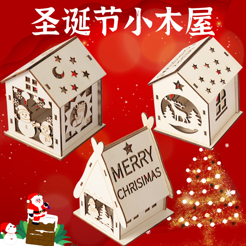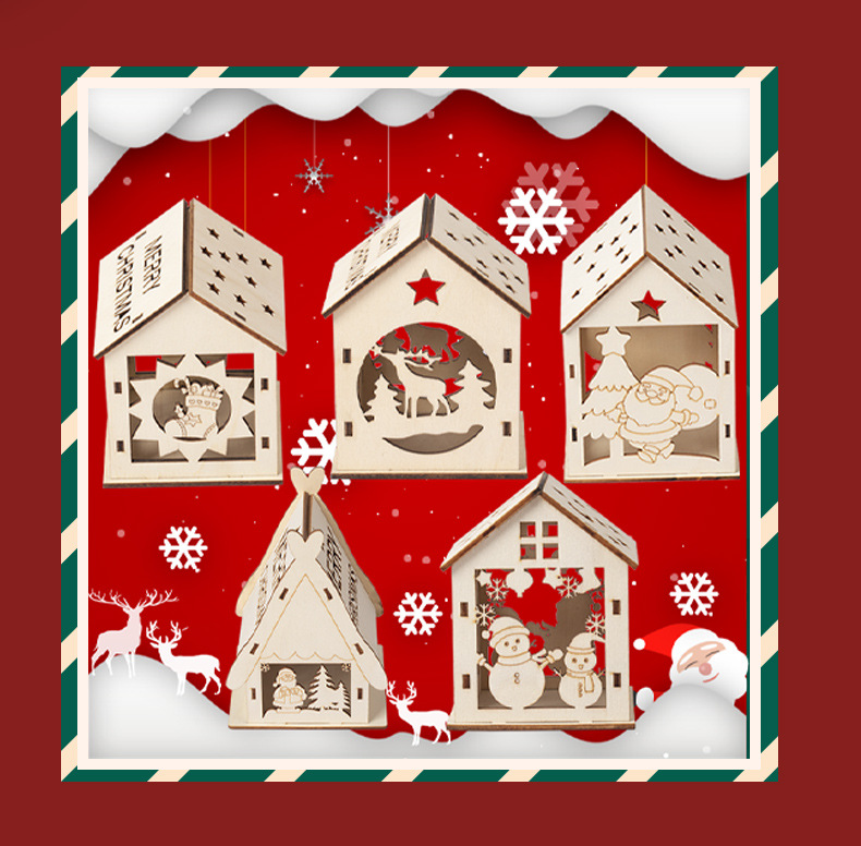 • 新しい DIY クリスマス丸太小屋、新しい中空クリスマス オーナメント、クリスマス デコレーション、木製工芸品