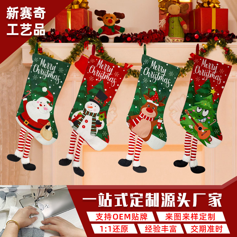 • 新しい漫画老人雪だるま装飾靴下クリスマスヘラジカクリスマスツリーキャンディーソックス