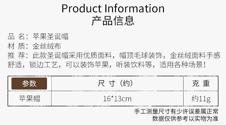 • クリスマスデコレーション用品クリスマスアップルハットミニハット子供用小さなギフト包装卸売