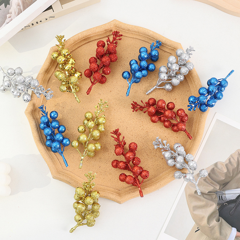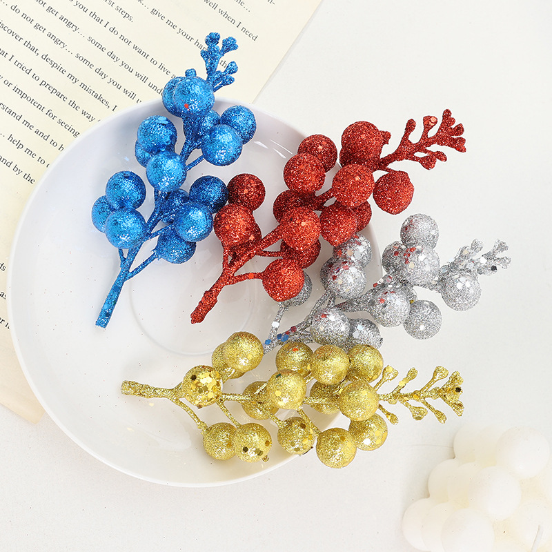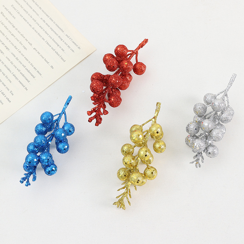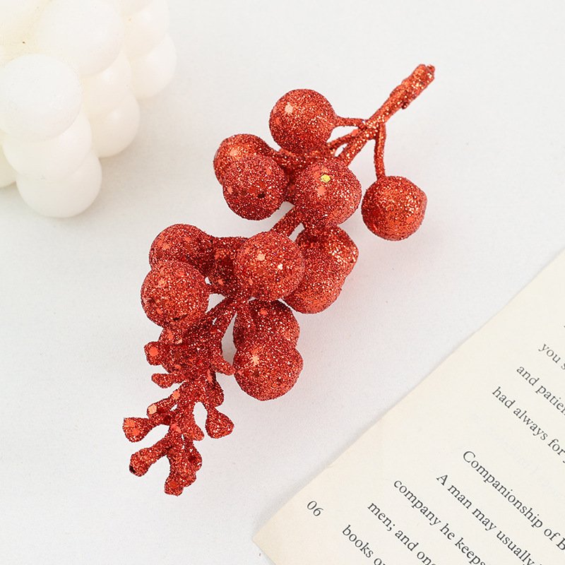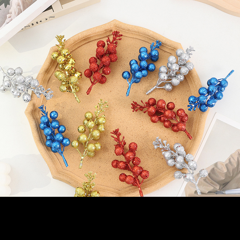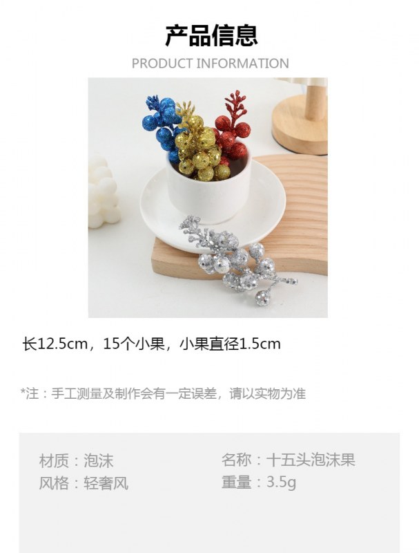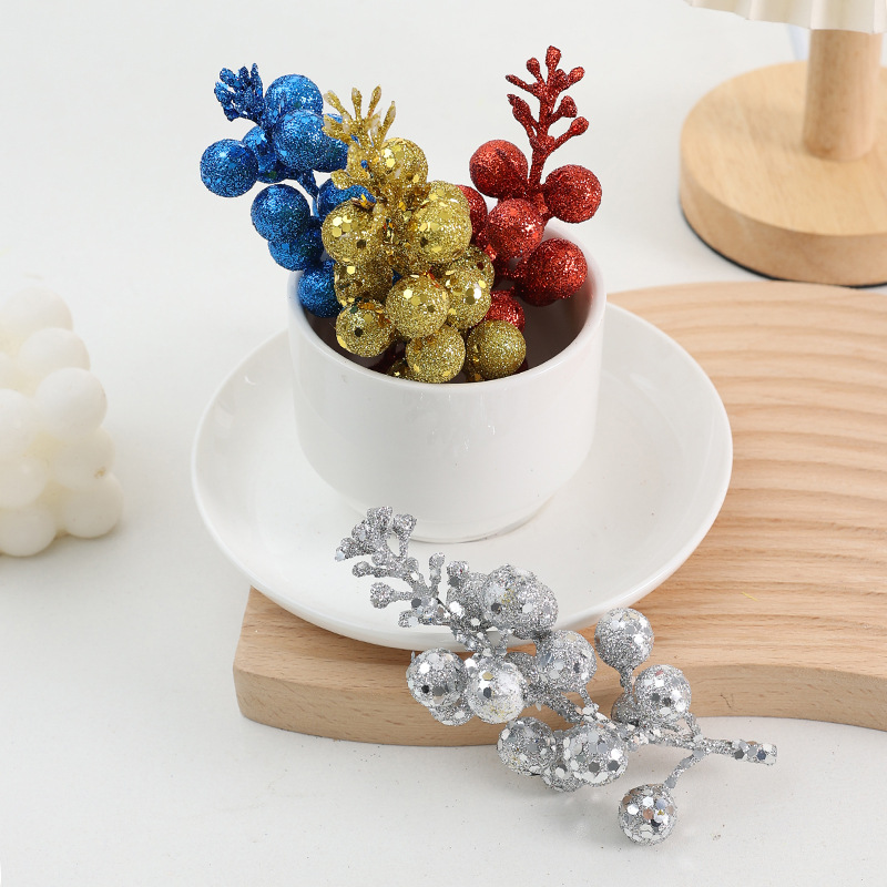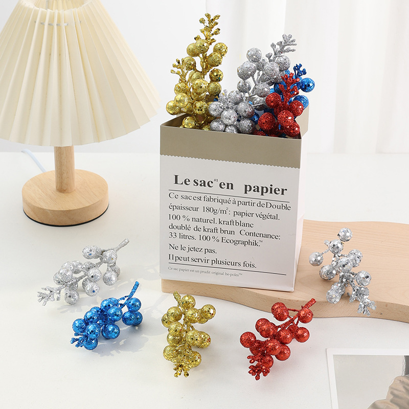 • 模擬クリスマス装飾フルーツゴールドパウダーボール DIY ガーランドアクセサリークリスマスツリーアクセサリー 15 ヘッドフォームゴールドフルーツ卸売