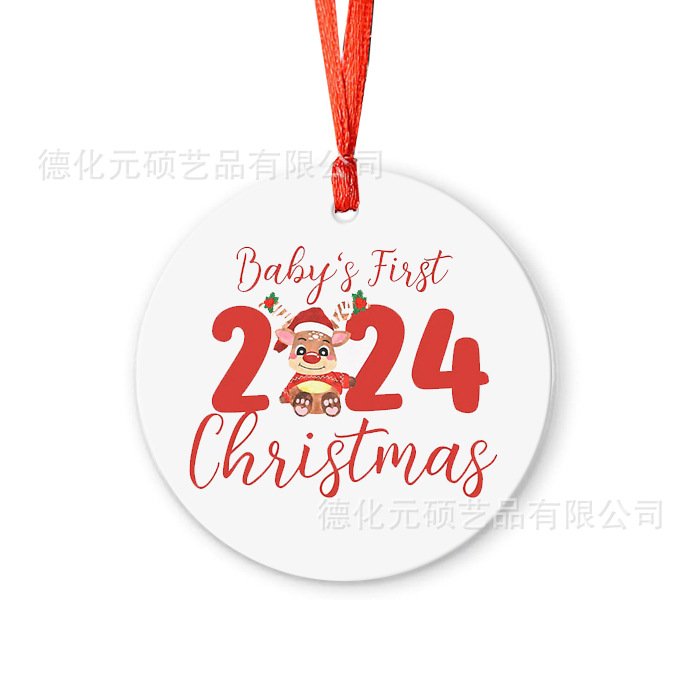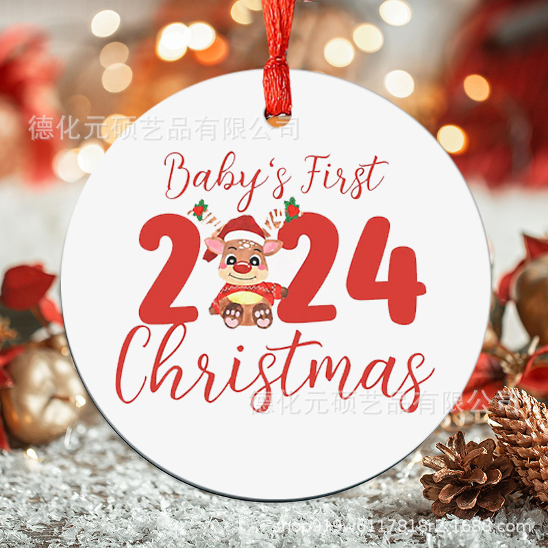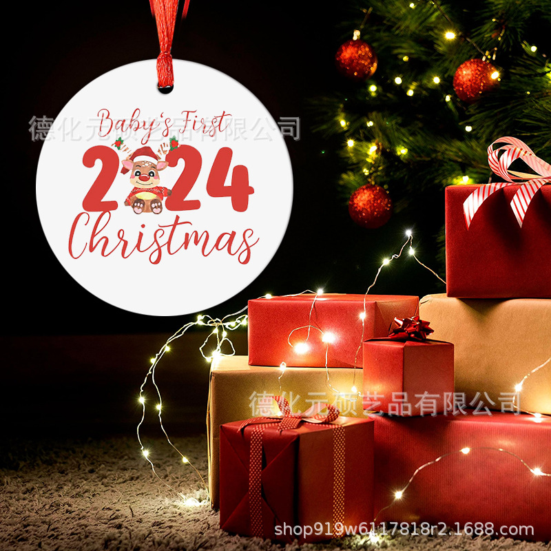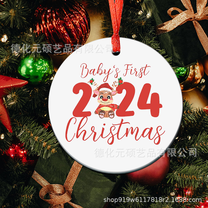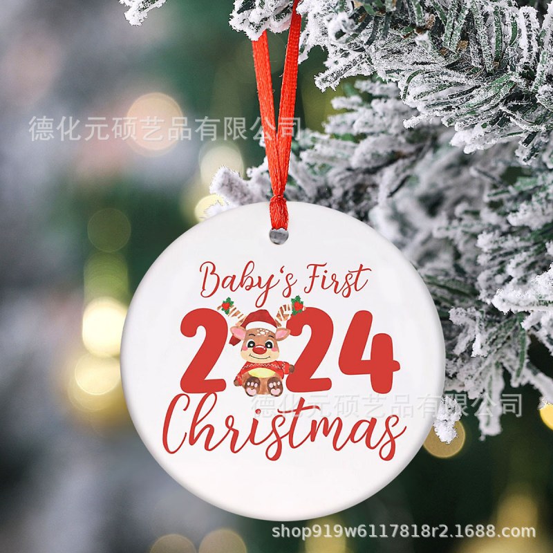 • 2024 ラウンド クリスマス ツリー ペンダント UV 印刷両面印刷ディスク クリスマス セラミック ペンダント