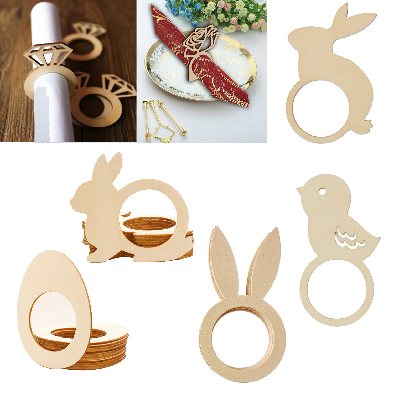 • イースターウッドチップナプキンリングテーブル用品 DIY ホームイースターパーティー装飾バニーエッグティッシュリング