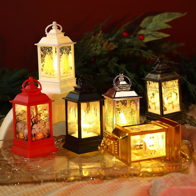 • クリスマス四隅風ランタンシミュレーション電子キャンドル小さなオイルランプ装飾ハロウィンレトロ LED キャンドルライト