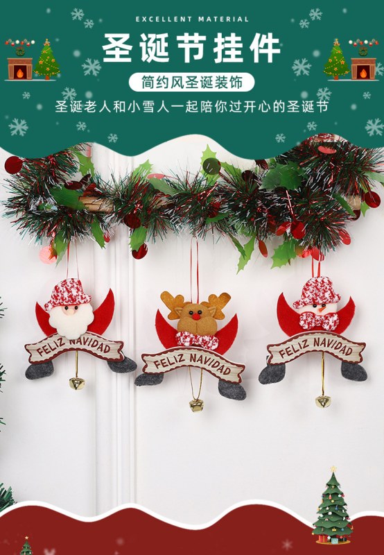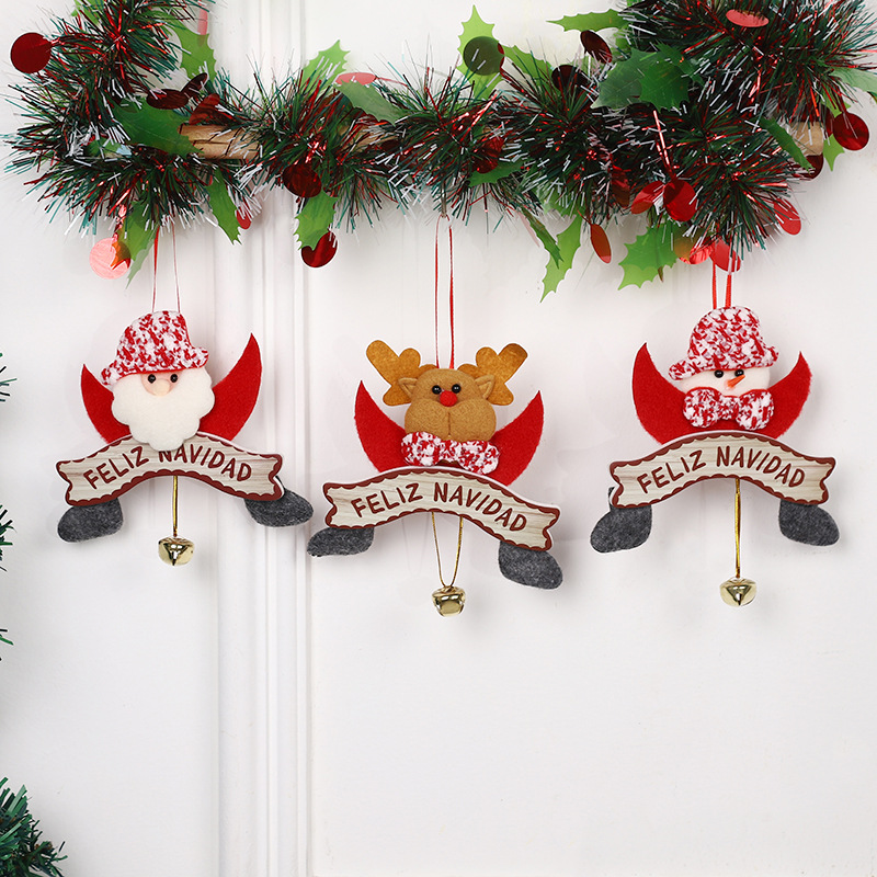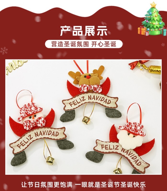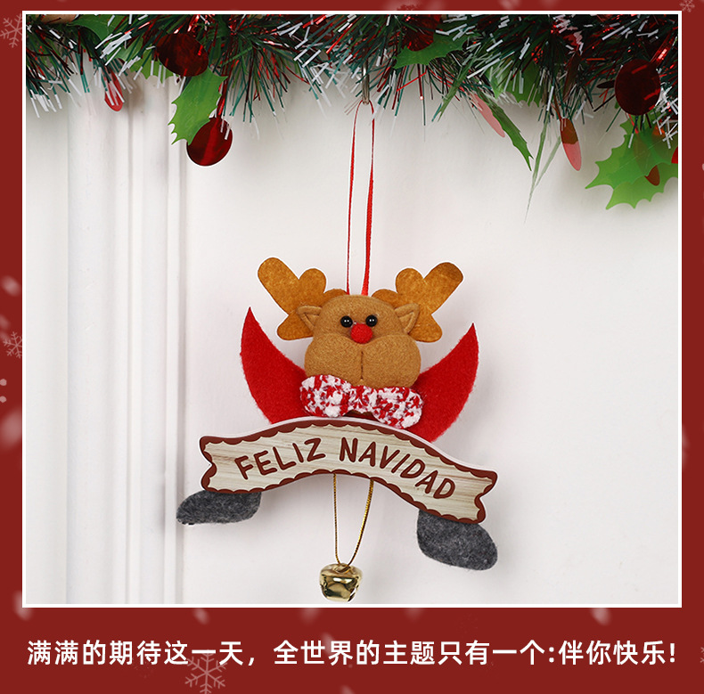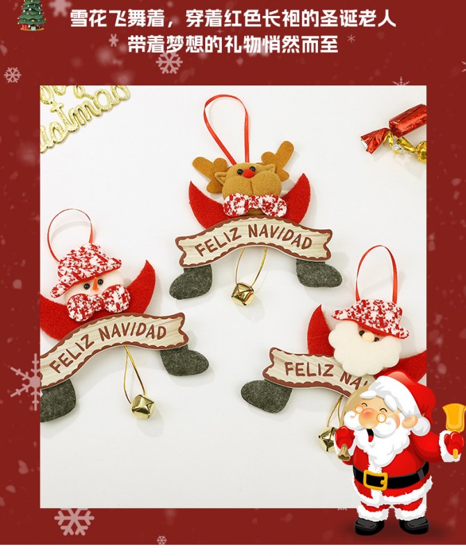 • 新しいクリスマスペンダント、かわいい漫画のサンタクロースヘラジカの装飾、クリスマスツリーのベルペンダントが在庫あります