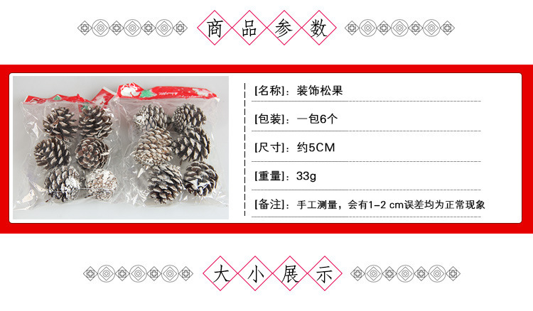 仕様:A-S49 5CM白い松ぼっくり:パックあたり6個