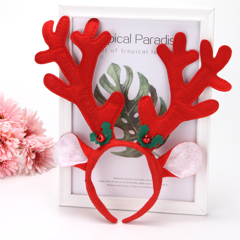 • クリスマス用マルチホーンブラウンイヤーアントラーズ、レッドベル肥厚アントラーズヘッドドレス、クリスマス用アントラーズカチューシャ在庫あり