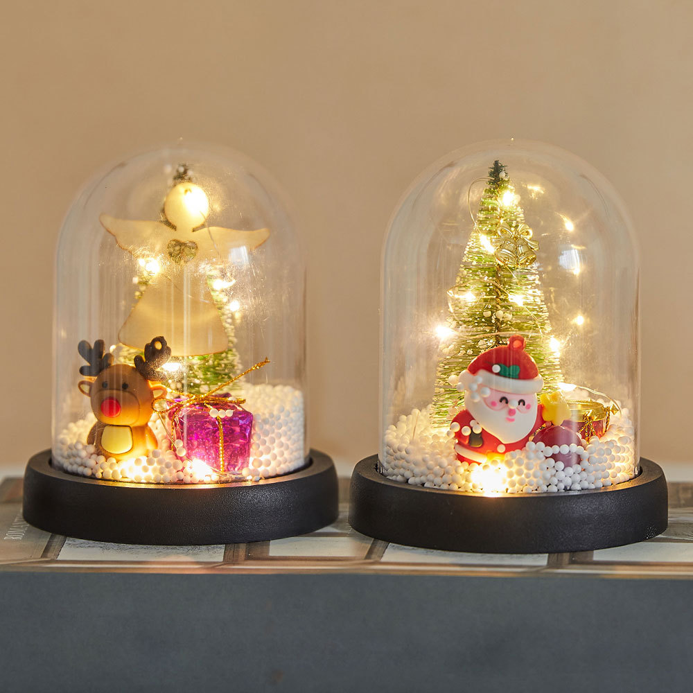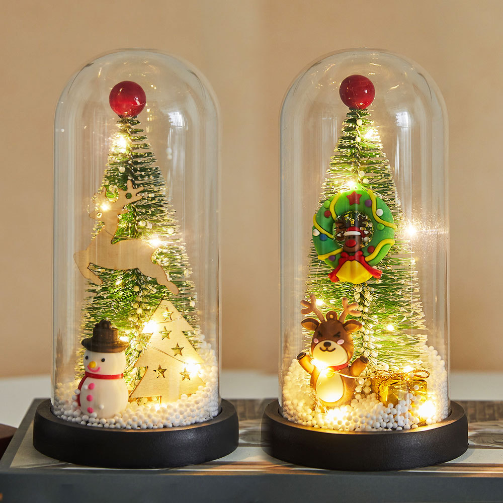 • クリスマスデコレーション、模造ガラスカバー、発光雪ツリー、ミニクリスマスツリーデスクトップオーナメント