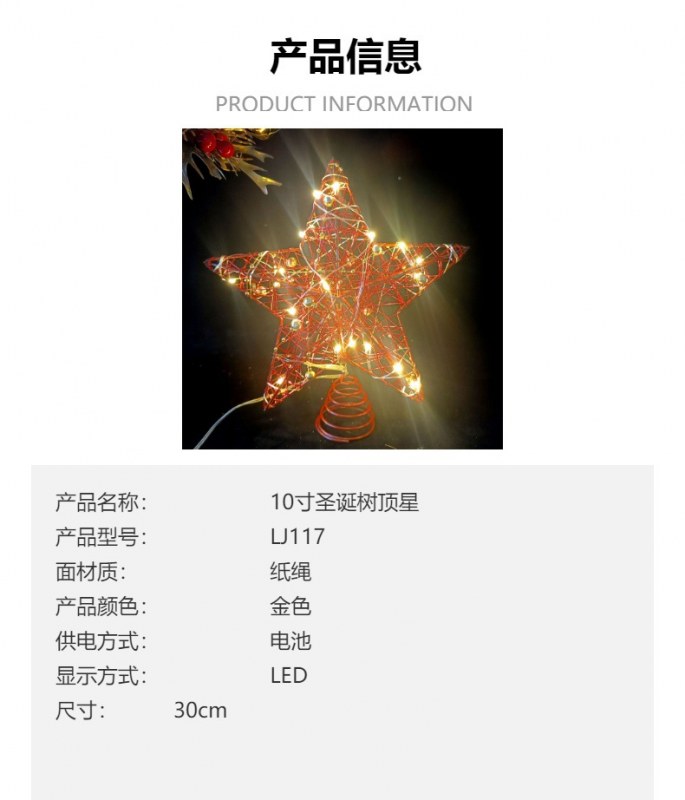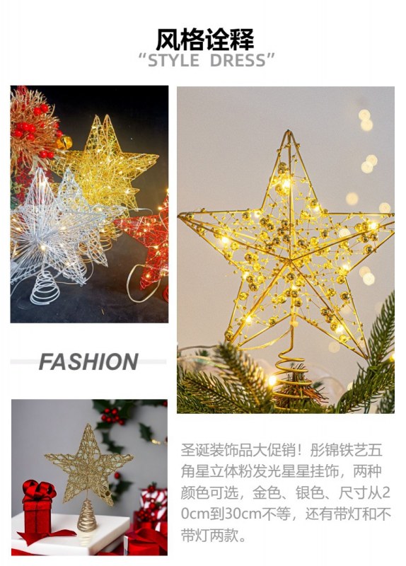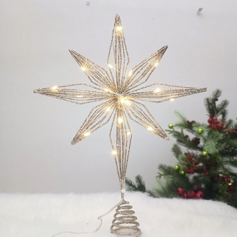 • 八芒星 LED発光ツリー トップスター クリスマスツリー トップスター アイアン 五芒星 八芒星 オーナメント