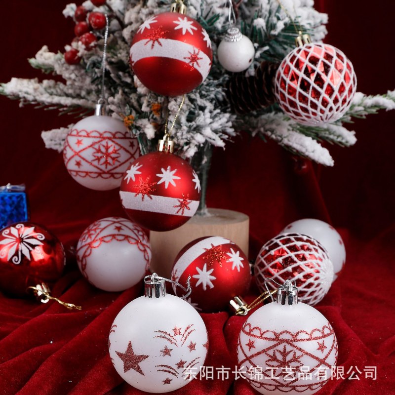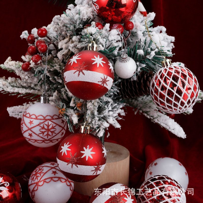 • クリスマスボールセットプラスチック電気メッキ手描きボールギフトボックスクリスマスツリーペンダントクリスマス雰囲気ハンギングボール