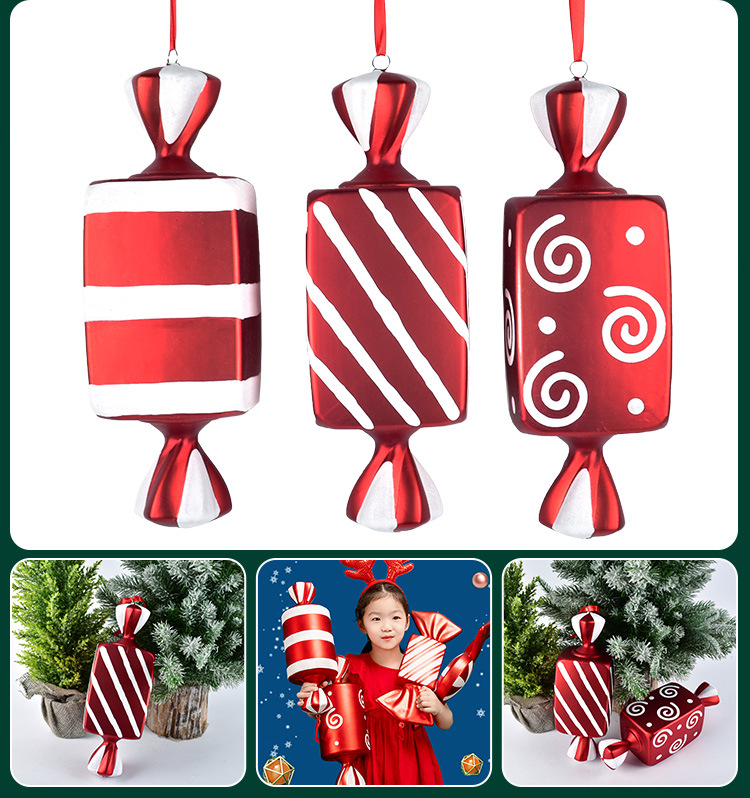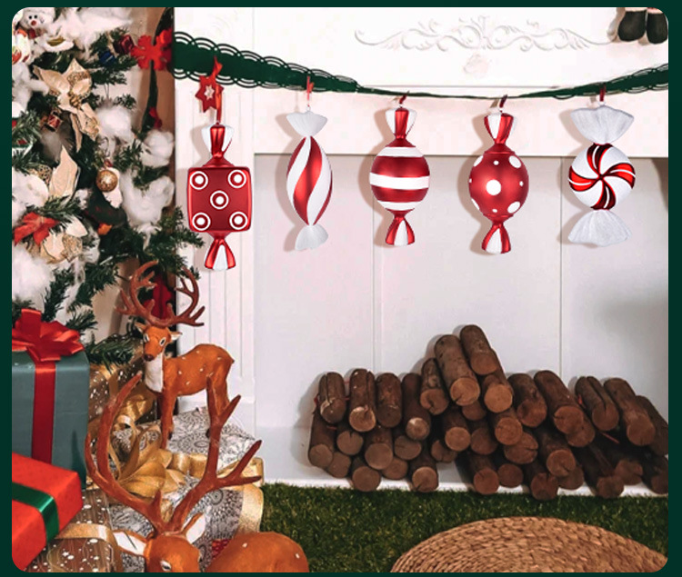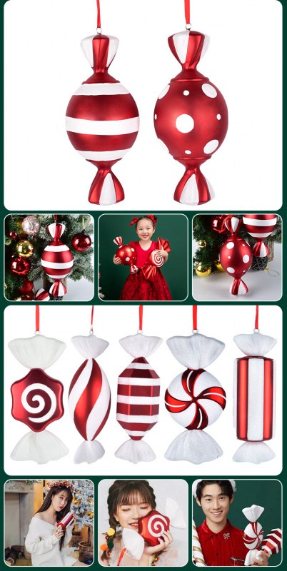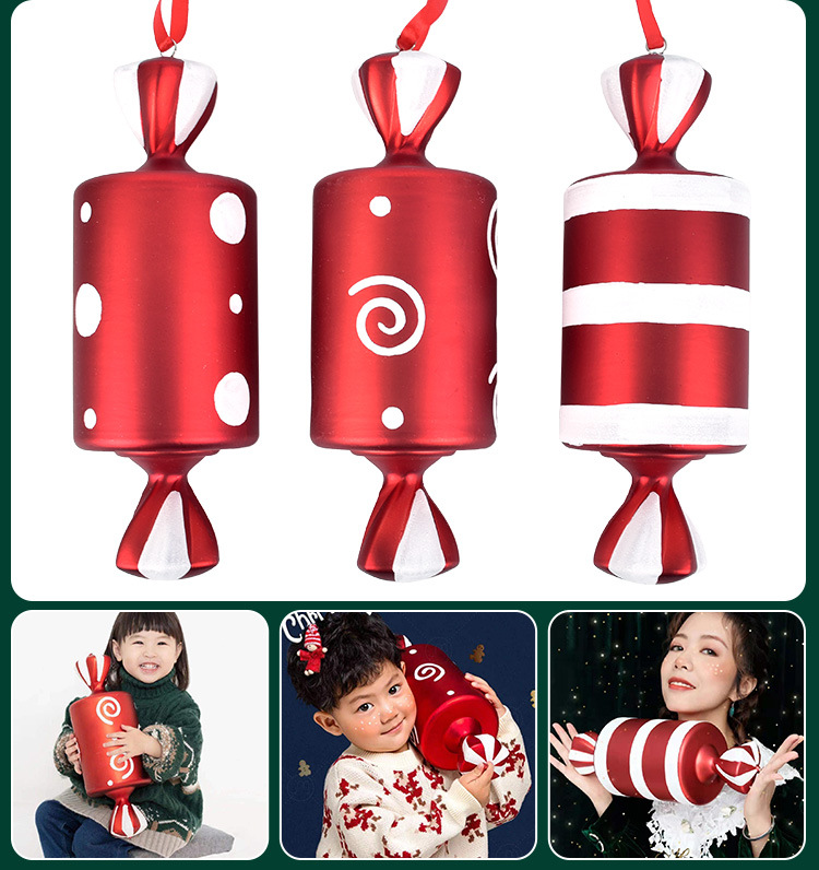 • クリスマス装飾用品ステージバーウェディングドレスアップ小道具 32 センチメートル赤と白塗装クリスマスキャンディー装飾ペンダント